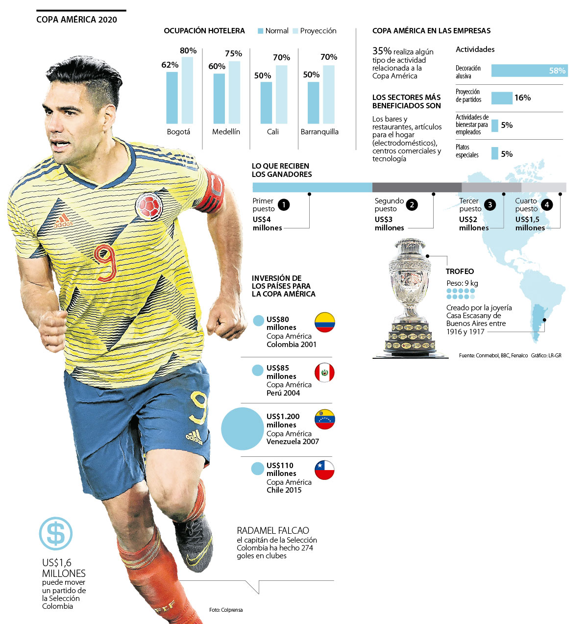 Cada vez más Colombia se convierte en un destino para albergar eventos deportivos. Este año realizó el Tour Colombia 2.1, que atrajo a más de 304.000 turistas a Medellín y el oriente antioqueño; a finales de marzo se conoció que Cali será la sede de los Juegos Panamericanos Junior 2021; la semana pasada Colombia fue elegido para acoger los mundiales de patinaje de carreras y el de hockey en línea en 2020; y ayer la Confederación Suramericana de Fútbol (Conmebol) anunció que el país, junto a Argentina, serán sede de la Copa América 2020. Esta noticia no solo fortalece a Colombia como uno de los países escenario de eventos deportivos, sino que la realización de un torneo de esta talla dejará un impacto económico en los sectores de comercio, restaurantes y bares, y turismo.