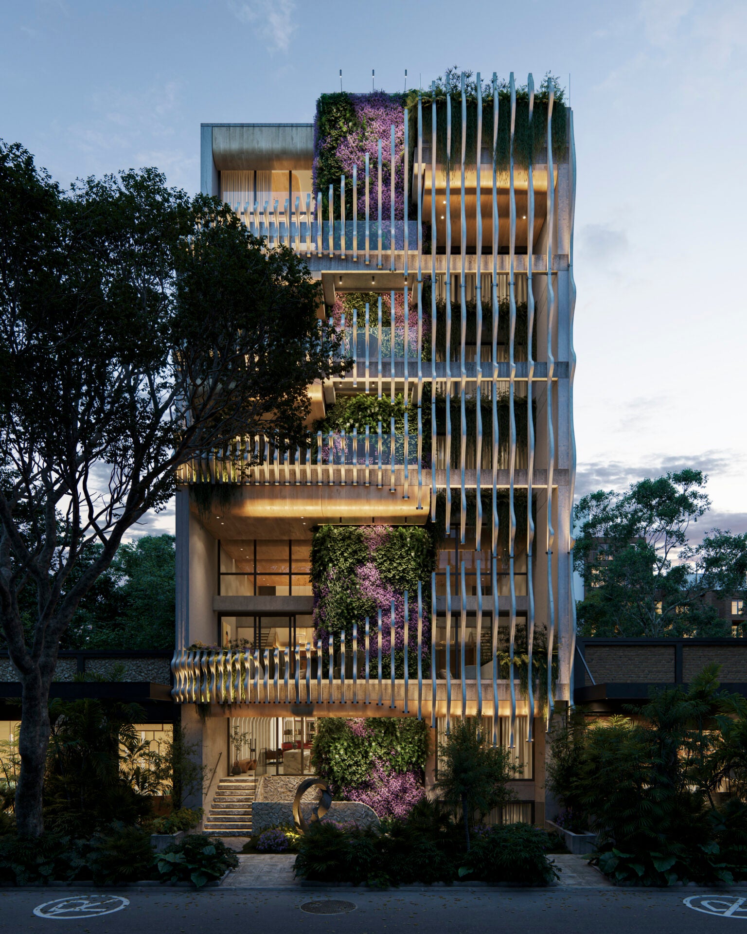 La orquídea, flor nacional de Colombia, simboliza resiliencia, diversidad y una sofisticación que nace de la naturaleza. En el proyecto, su presencia no es literal sino conceptual: se traduce en curvas envolventes, capas superpuestas, transiciones suaves y una composición que sugiere crecimiento orgánico y delicadeza estructural. La arquitectura y los interiores evocan esa evolución natural, desde la raíz hasta el pétalo, generando una narrativa espacial coherente.