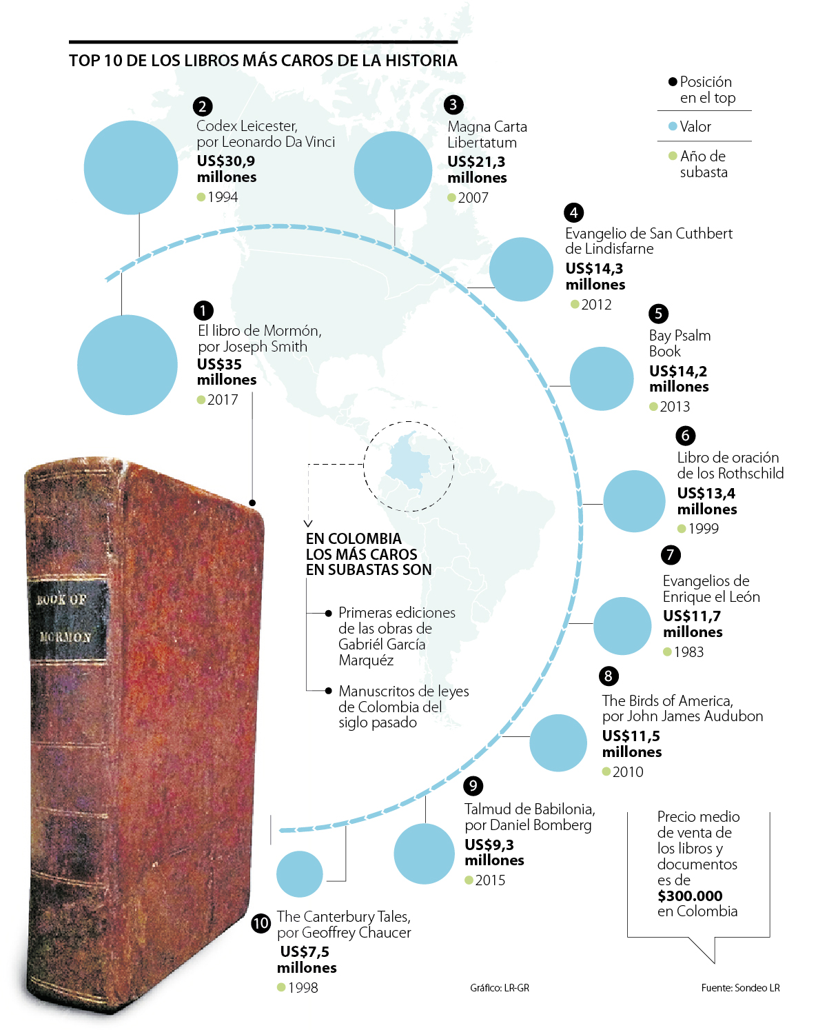 Al preguntar sobre cuáles libros en Colombia podrían completar la lista de las obras más caras del país, Ossa, dijo que “aquí casi no se hacen subastas de libros, porque generalmente se hacen en el extranjero, en las casas especializadas que hay en Londres, en Nueva York u otras ciudades del mundo”.