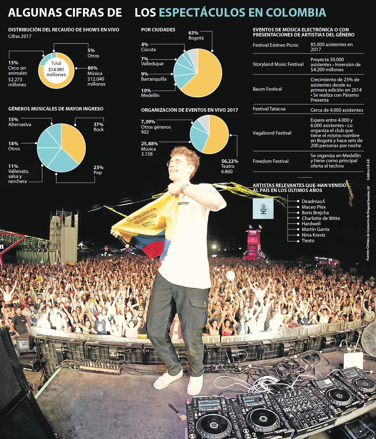 Hace un poco menos de dos décadas la escena de la música electrónica tuvo sus primeros pasos en las ciudades capitales, en donde se podían escuchar artistas internacionales, y donde clubes como Gótica, en Bogotá, o el Parque Jaime Duque eran algunos de los escenarios para el desarrollo del primer boom de este género que actualmente acumula 15% del recaudo por eventos musicales en vivo dentro de la categoría de ‘alternativa’.