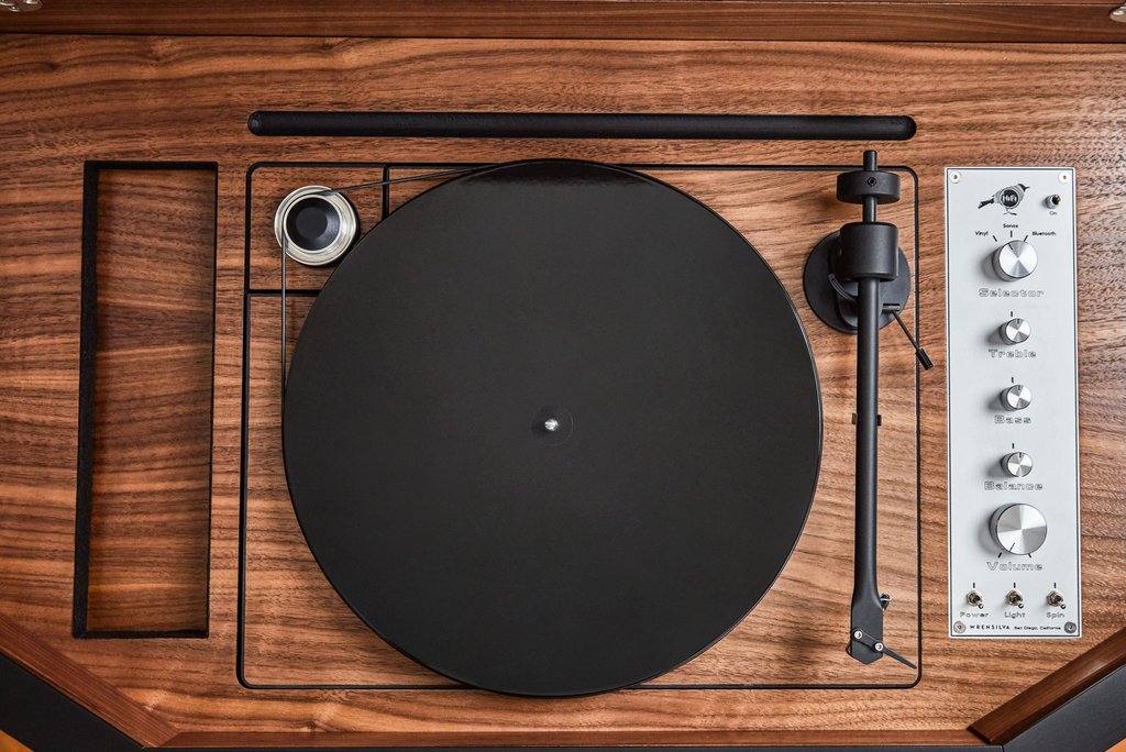 La consola, como otras diseñadas por la empresa californiana Wrensilva, es multiusos. Aparte de que su modelo encaja perfectamente con cualquier estilo de hogar, está equipado con un poderoso amplificador de 100 W, dos potentes altavoces que no distorsionan ni los volúmenes más altos, y un espacio de almacenamiento para 60 vinilos.