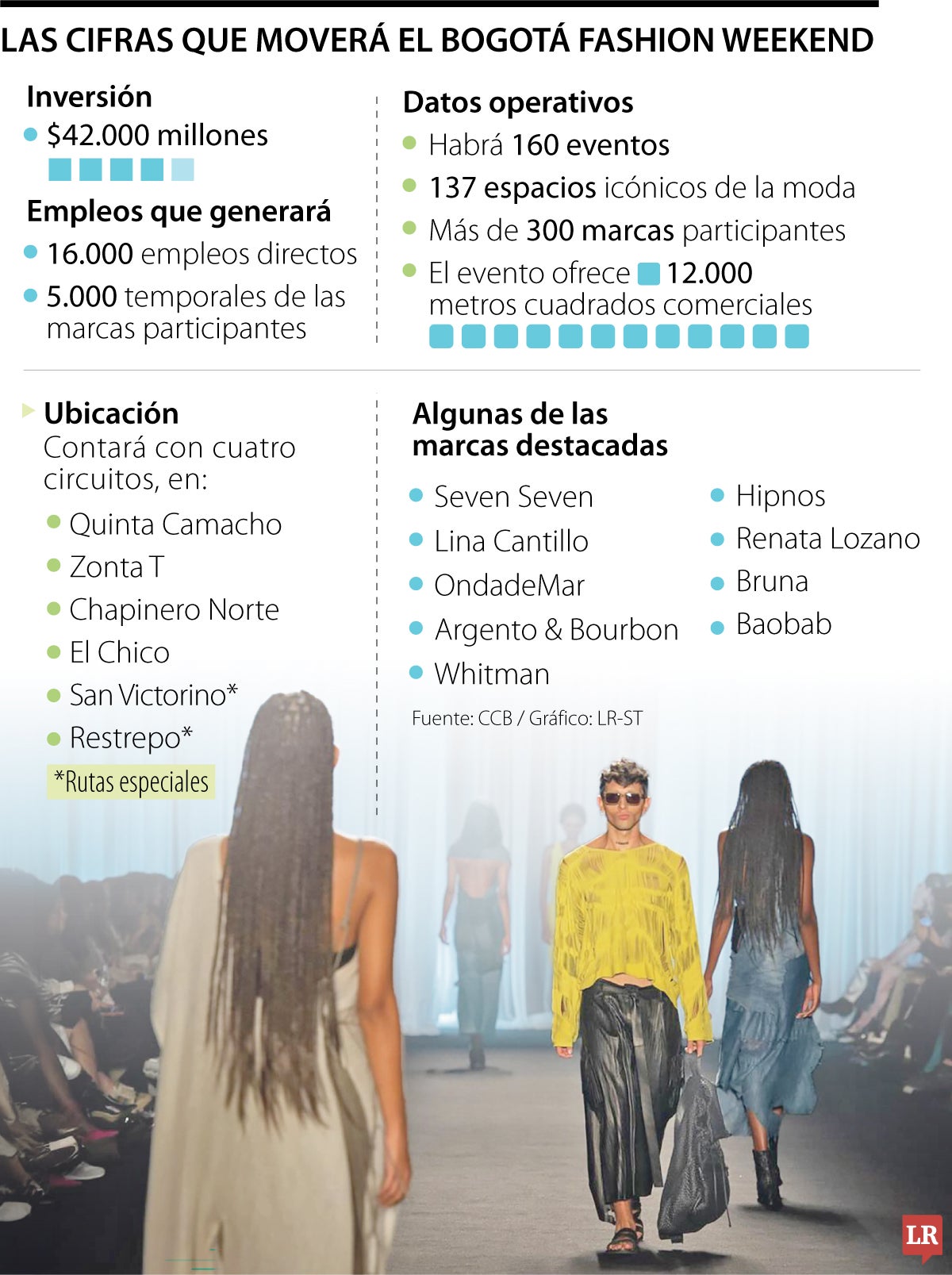 En cuanto a las cifras que espera mover, serán 16.000 empleos directos los que generen las empresas y 5.000 más temporales de las marcas participantes. Además, el evento cuenta con más de 12.000 metros cuadrados comerciales en cuatro circuitos, y contó con una inyección de capital de $42.000 millones desde la CCB.