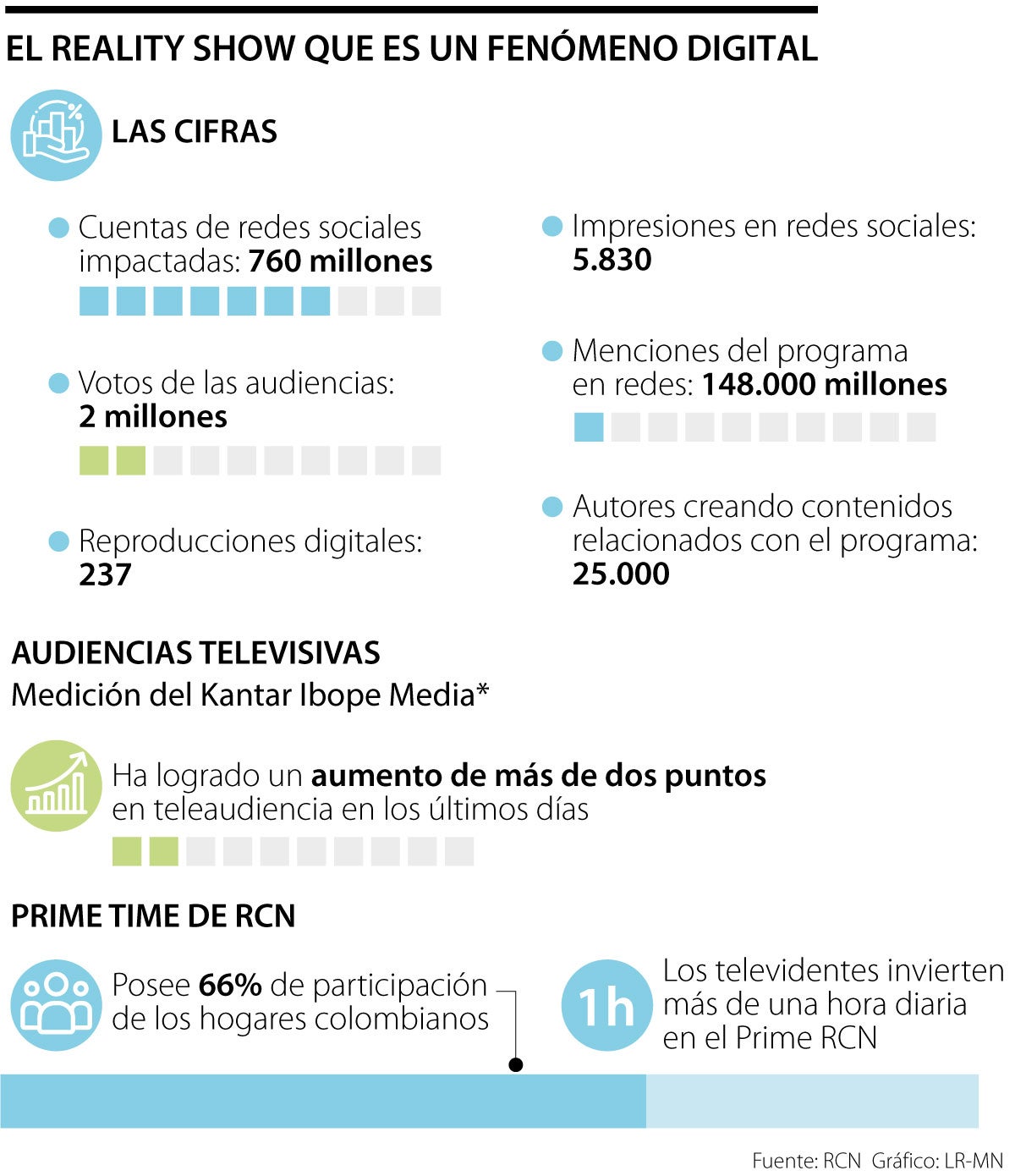 Según Santiago Escobar, vicepresidente comercial de RCN TV, “el fenómeno en digital es una locura. Desde su inicio el impacto en redes sociales ha sido masivo, con un alcance de más de 720 millones de cuentas en redes sociales, más de 25.000 autores únicos de contenido orgánico, más de 170.000 menciones del programa y sus participantes, y más de 7.200 millones de impresiones en digital”. Esto ha hecho que ‘La Casa de los Famosos’ ya acumule más de 2 millones de votos de las audiencias definiendo el destino de los participantes.