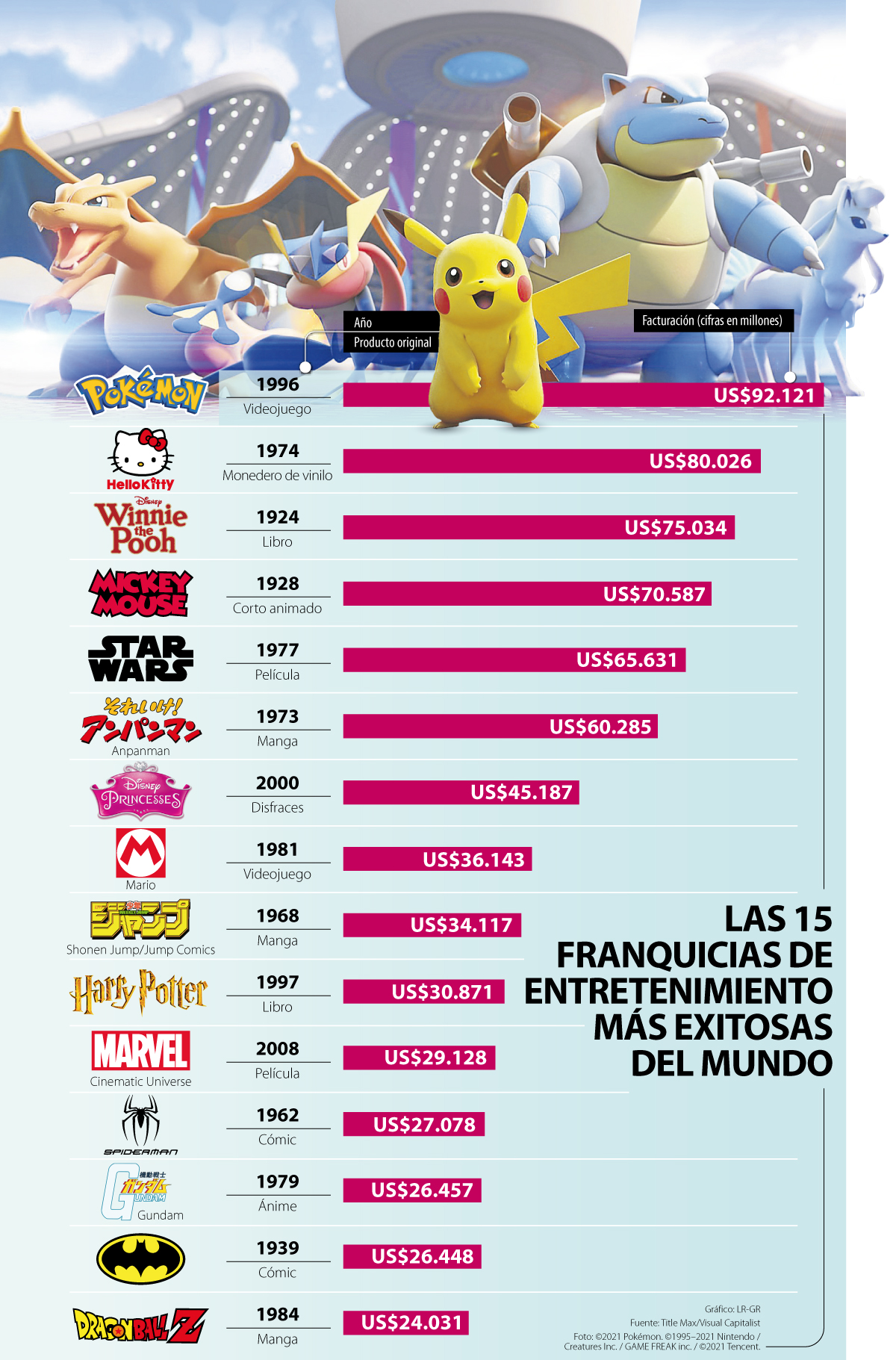 Pokémon cada vez se acerca a ser una marca que mueve más de US$100.000 millones en el mundo, gracias a eso es la líder entre un grupo de franquicias como Star Wars o Harry Potter.