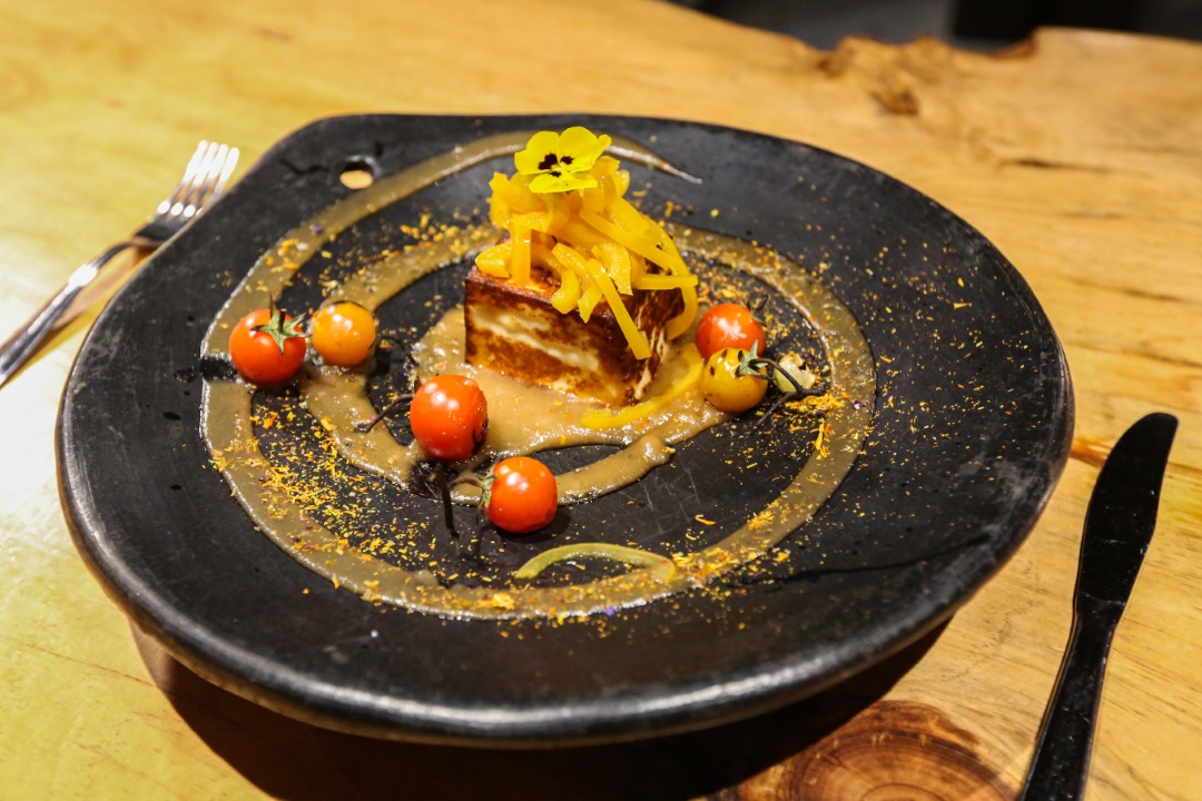 Este queso costeño es fabricado por campesinos de La Dorada, en Caldas, acompañado por salsa de ruibarbo, encurtido de chiles manzanos y tomates cherry cosechados en la finca ‘La Utopia’, cerca de Monserrate.