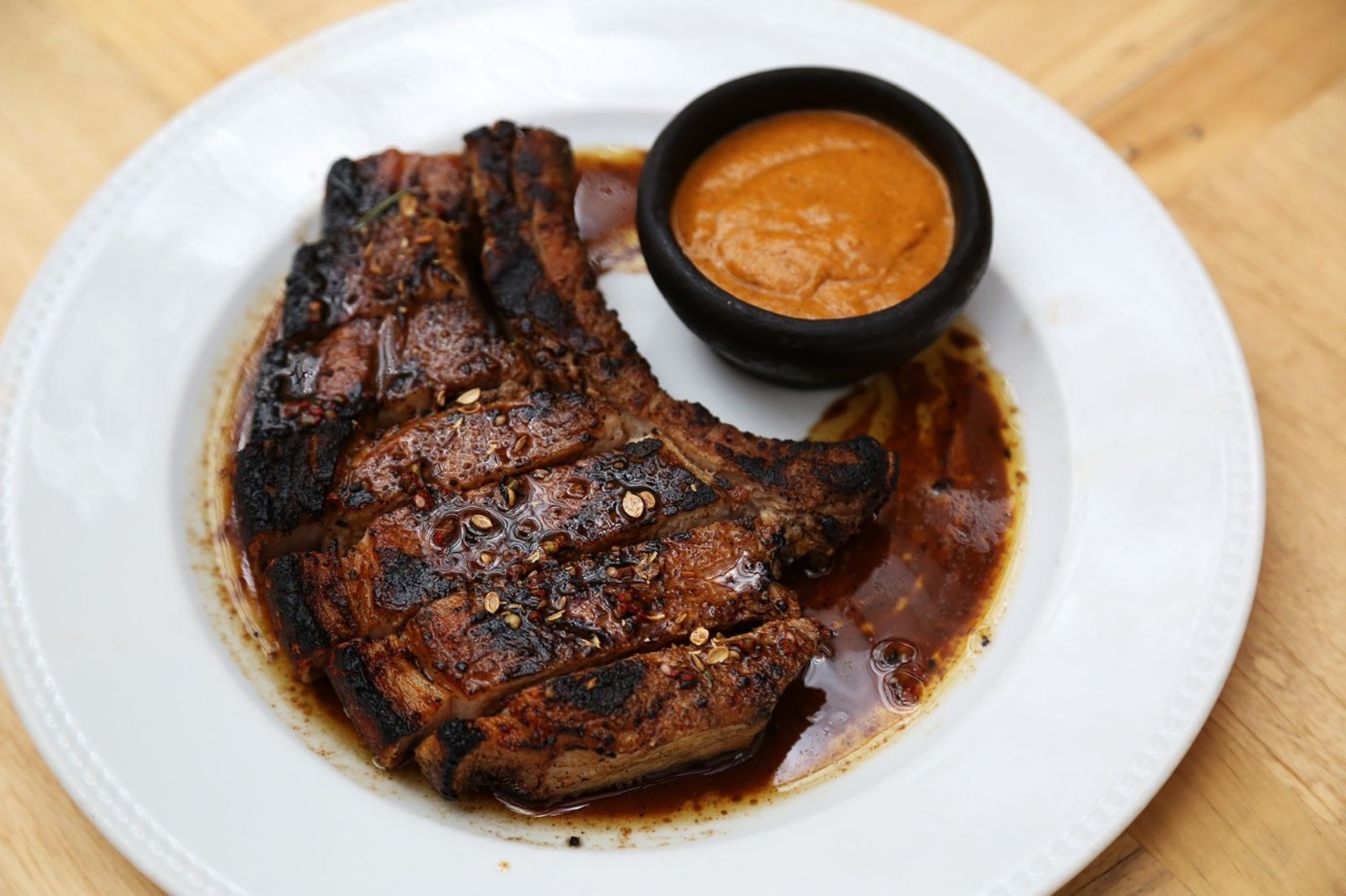 Este plato corresponde a 750 gramos de res, es elaborado con ganado regenerativo que se madura durante 30 días, bien acompañado con una salsa que realza los sabores del producto. Se trata de uno de los cortes que recrean el sabor de la parrilla con conservaciones aromáticas.