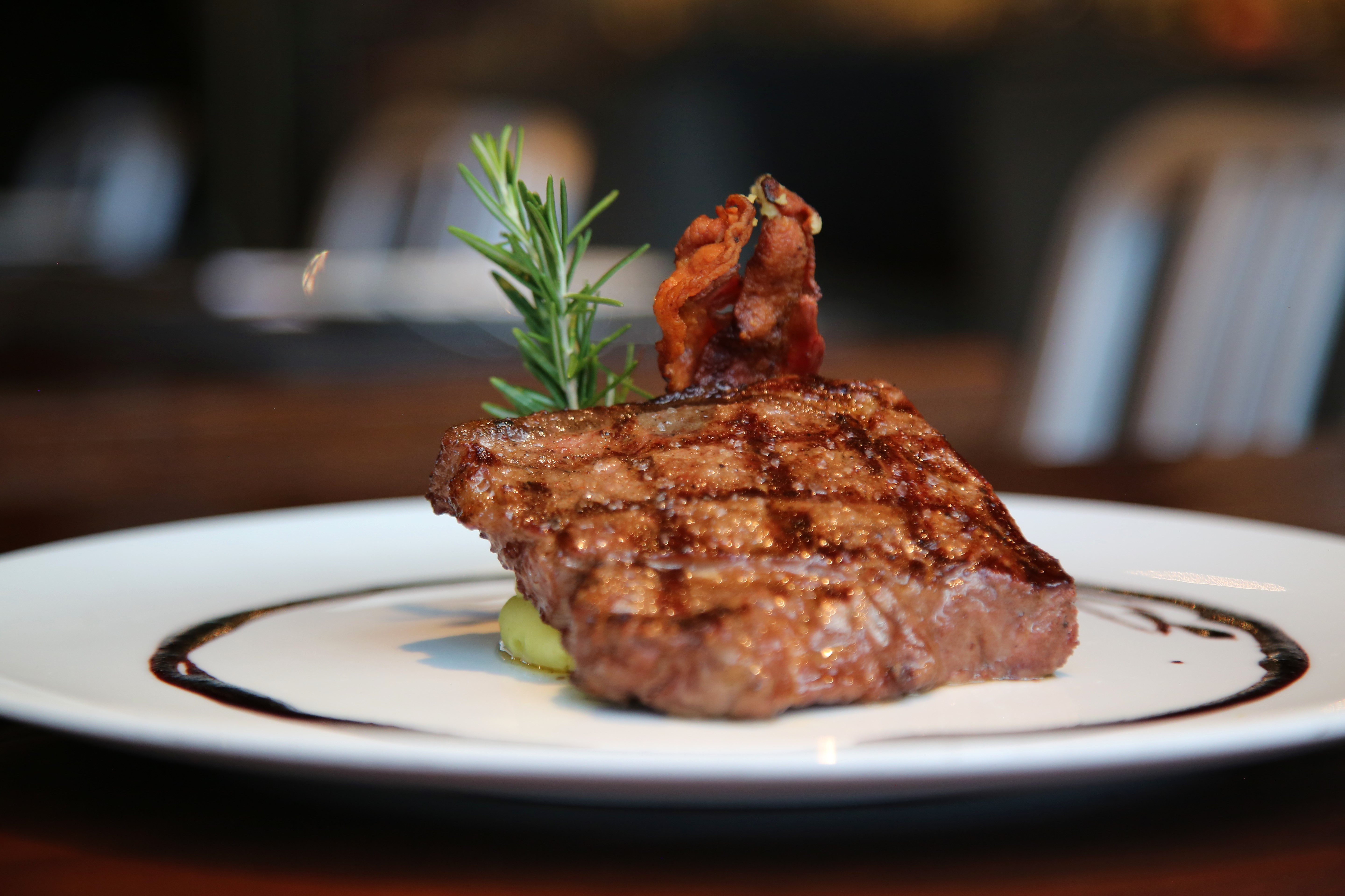 Angus a la parrilla, ahumado con romero, salsa boldelaise sobre puré de habas verdes.