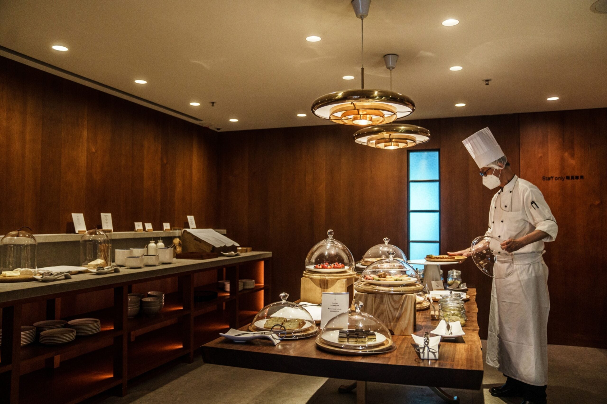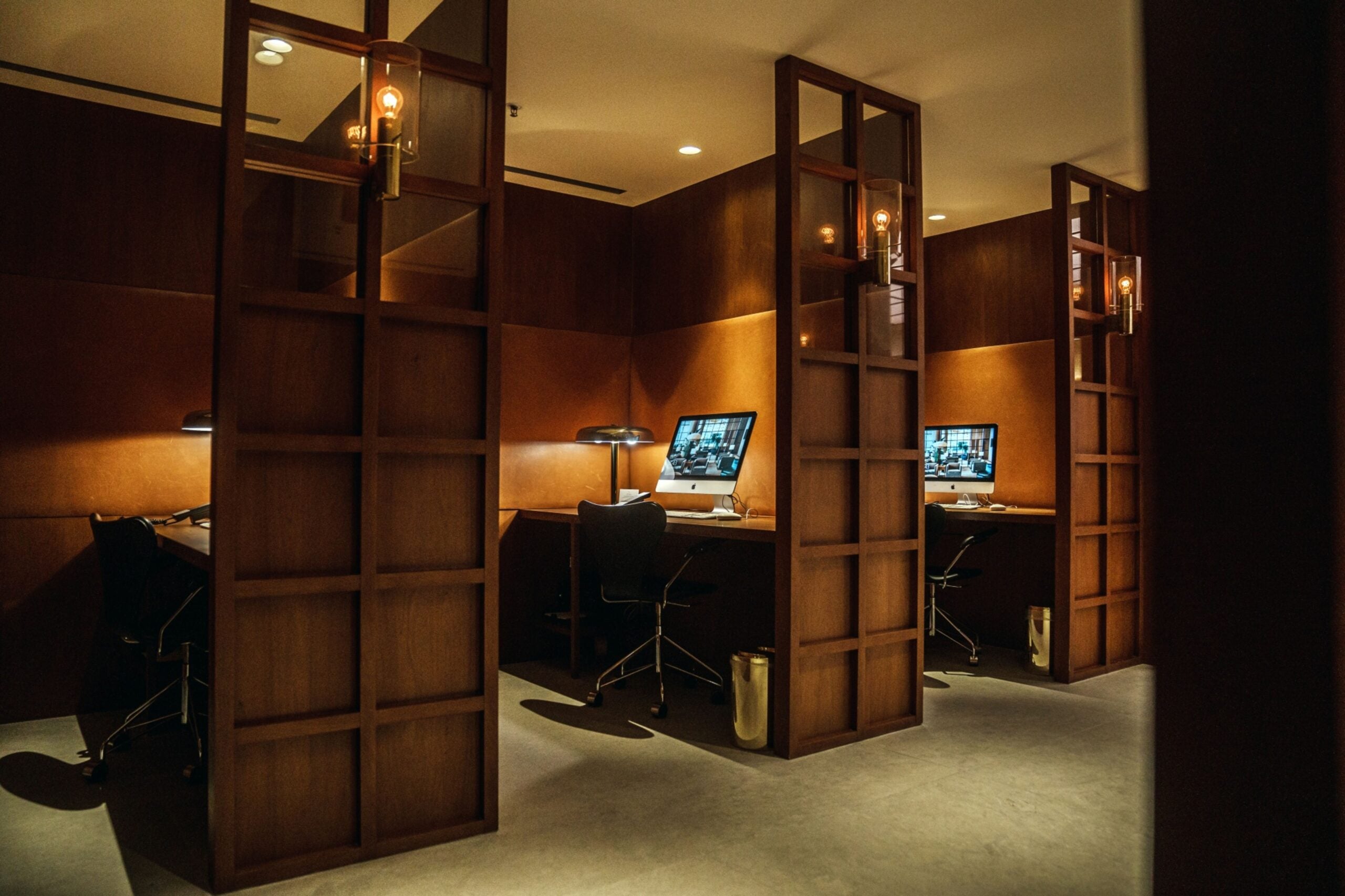 La sala VIP se encuentra junto a la Puerta 63, una de las más alejadas de la terminal del aeropuerto. Una escalera mecánica desciende desde la explanada amplia y luminosa hasta un espacio perfumado de techo bajo. En un podio, dos miembros del personal con uniforme de Cathay saludan a los pasajeros y verifican las credenciales de ingreso. Más allá, un pasillo conduce a la sala principal, que tiene rincones a los lados para aquellos que buscan más privacidad.