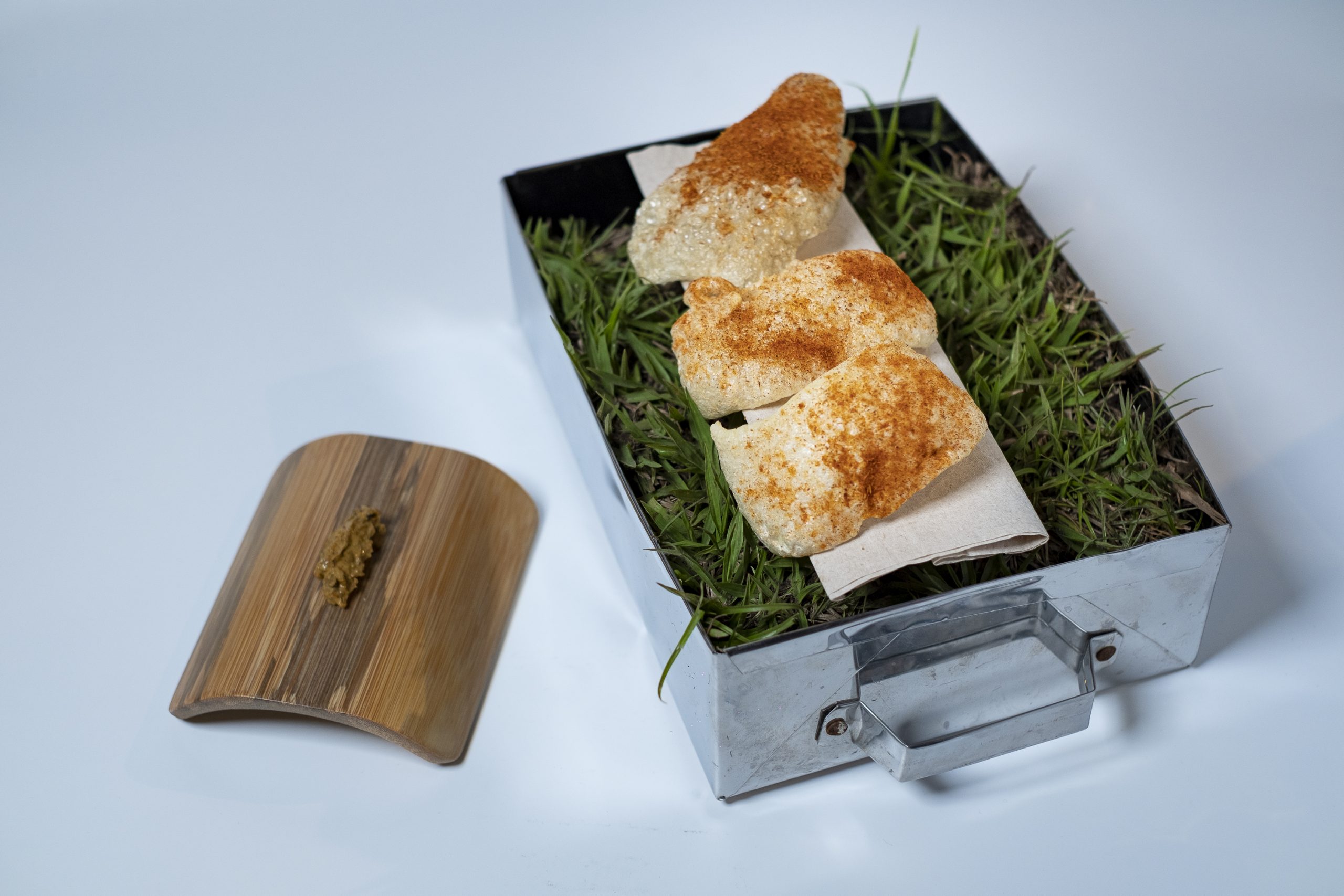 Este plato de raíces quindianas y de inspiración campesina, es un chicharrón inflado que nace por el uso del desperdicio del cerdo. La piel del animal se cocina y luego se deshidrata. Se acompaña con un hogao.