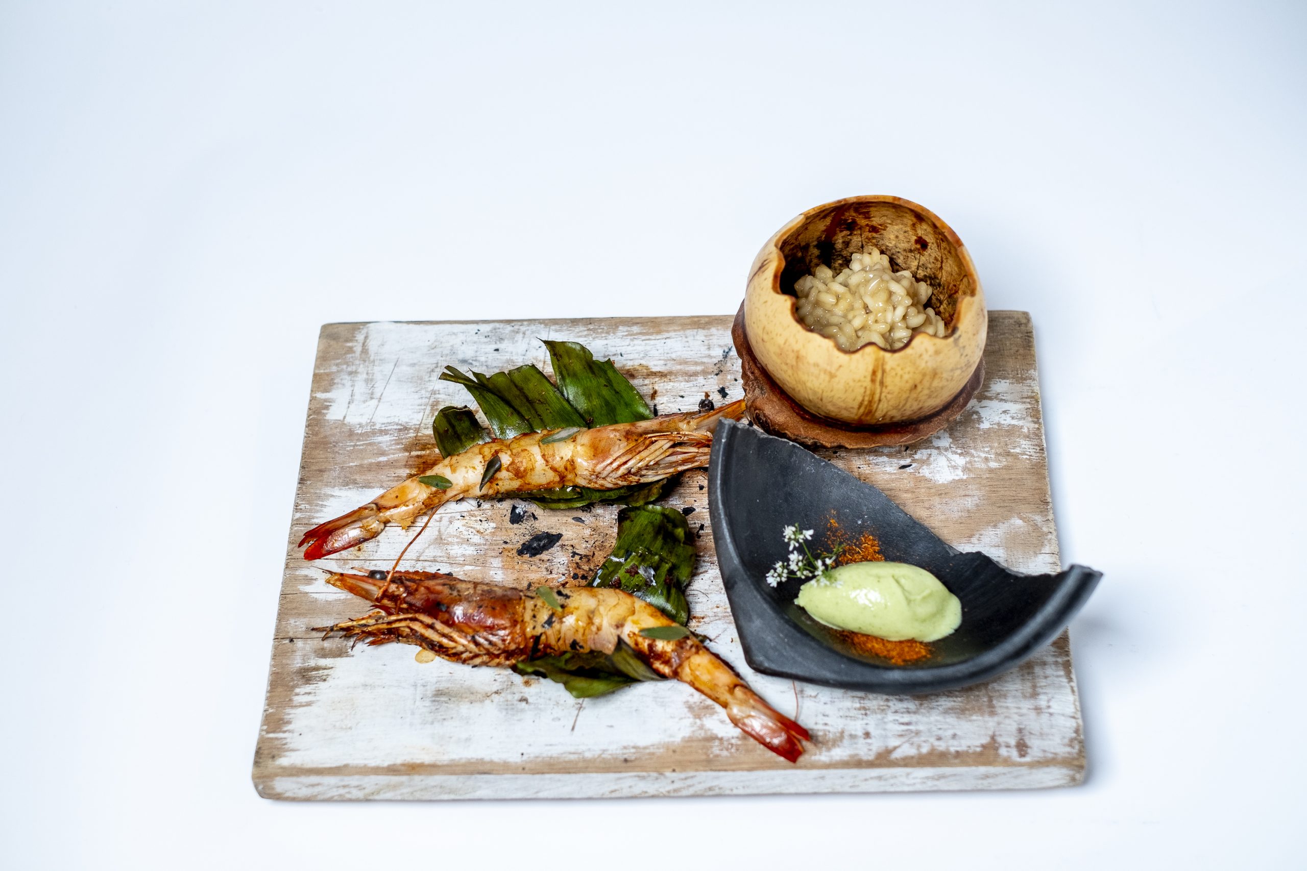 Un segundo plato destacado que podrá encontrar en el menú de El Silo, es este ceviche de tilapia y unas gambas salteadas con limón y ajo. Además, viene acompañado de un helado de cilantro.