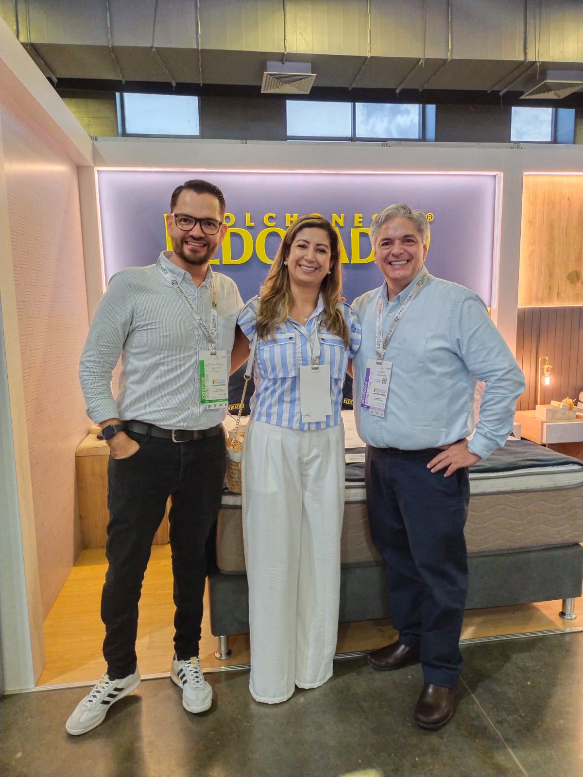 Esteban Rodríguez, gerente del Hotel F25; Ángela Robayo, jefe de alojamiento de Colchones El Dorado; y Harold Mosquera, ventas institucionales de la empresa de colchones.