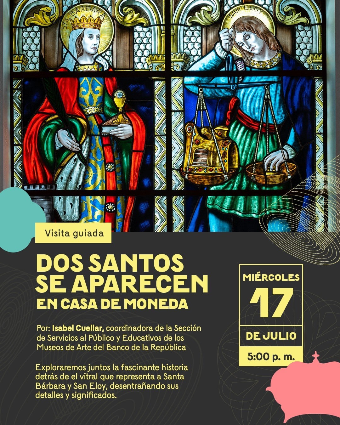 Si es amante de la historia religiosa, el descubrimiento de dos vitrales en el Museo Casa de la Moneda, le va a interesar. A partir del próximo miércoles 17 de julio saldrá a la luz la obra de arte que representa a Santa Bárbara y San Eloy. La visita guiada desentrañará los significados de los detalles de esta obra. La exposición estará disponible en el Museo Banco de la República.
