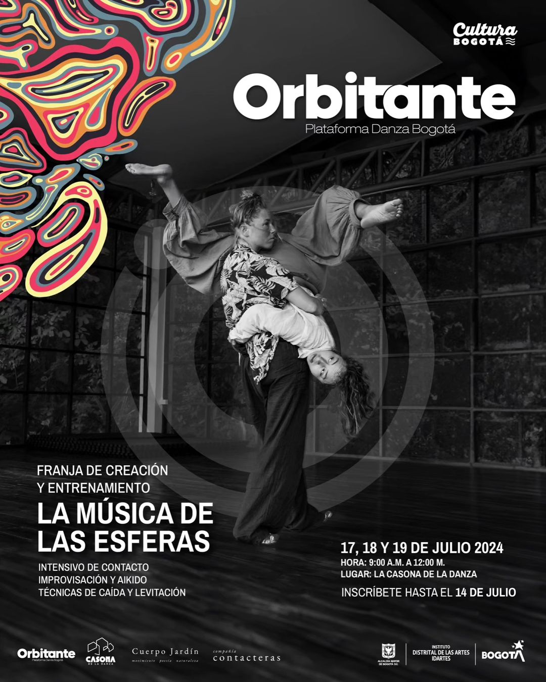 El estudio de danza, Orbitante, tiene un evento el próximo 17, 18 y 19 de julio en La Casona de la Salsa en el que podrá expresarse a través del movimiento. Este es un entrenamiento en el que podrá conectar cuerpo y mente con el tipo de baile contract improvisation. El taller comienza desde las 9:00 a.m. y para inscribirse, lo podrá hacer visitando la web de Orbitante.