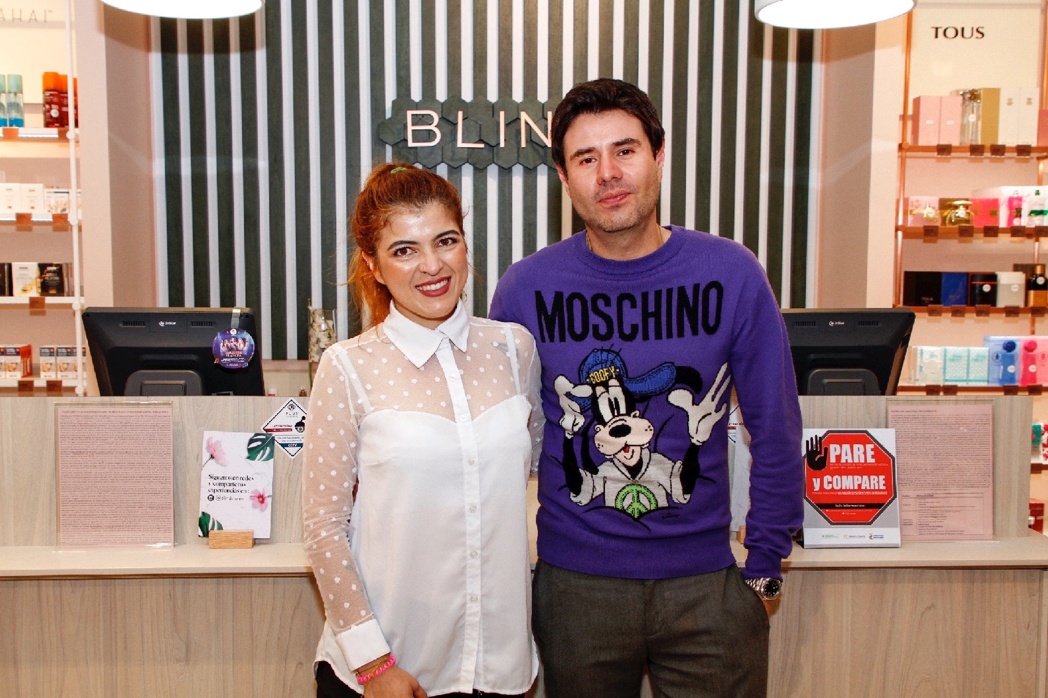 La tienda multimarca de maquillaje Blind realizó un brunch para celebrar la apertura de su tienda en el centro comercial Santafé, en Bogotá. Con esto, la compañía aumenta su presencia en el mercado local, donde tiene establecimientos en Bogotá, Medellín, Cali, Pereira, Barranquilla, Bucaramanga y Cartagena. En la foto: Juanita Marín, líder de entrenamiento de Prosalon, y Carlos Matiz, empresario.