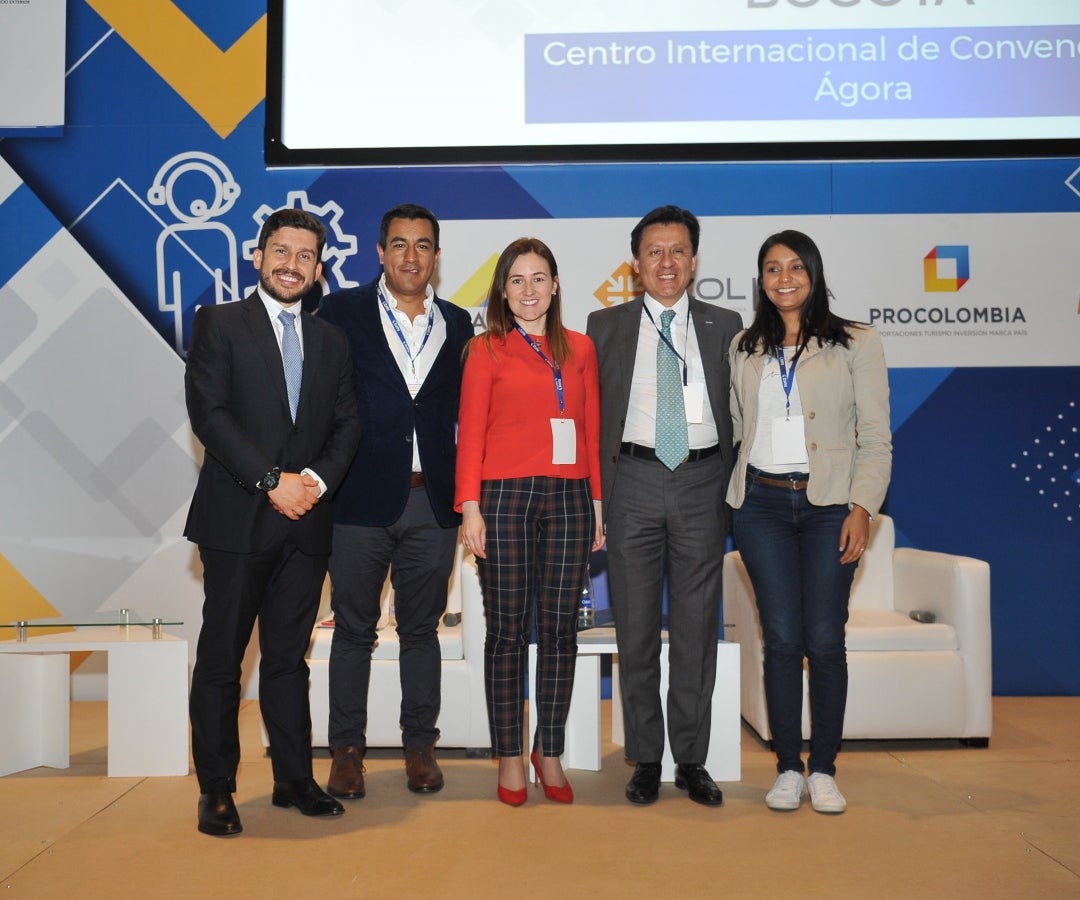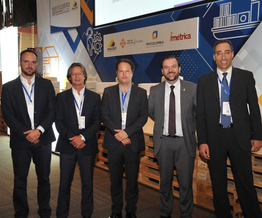 Andrés Rubiano, CEO HUB 32; Juan Pablo Matiz, director Imétrica; Sandra Burgos, dir. observatorio de Seguridad Vial; Arnulfo Cuerva Aguilera, vp de Fedetranscarga y Carolina Ruiz, CEO Mipaquete.com.