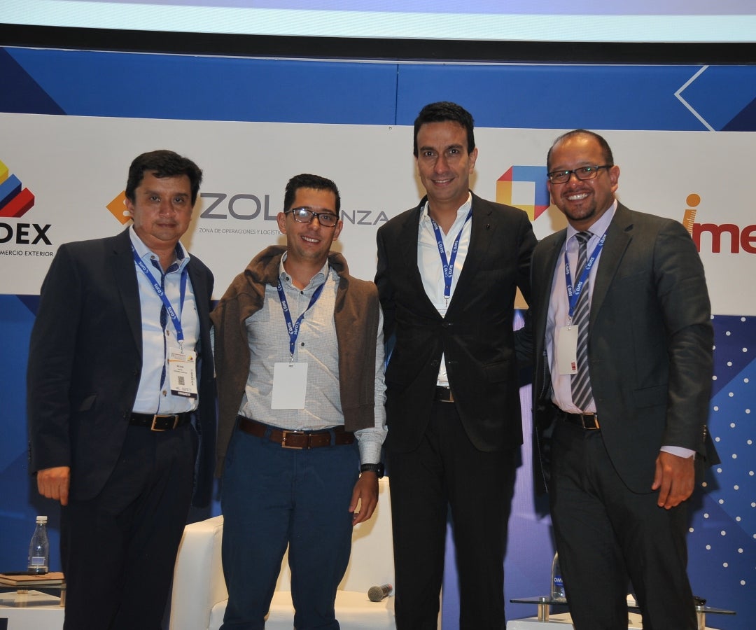 Nelson Mariño, fundador de Decisiones Logísticas; Simón Machado, co-founder de Medebike; Diego Fernando Mantilla, pte de TCC y Mario Fontalvo, director iniciativa Clúster Logística y Transporte CCB.