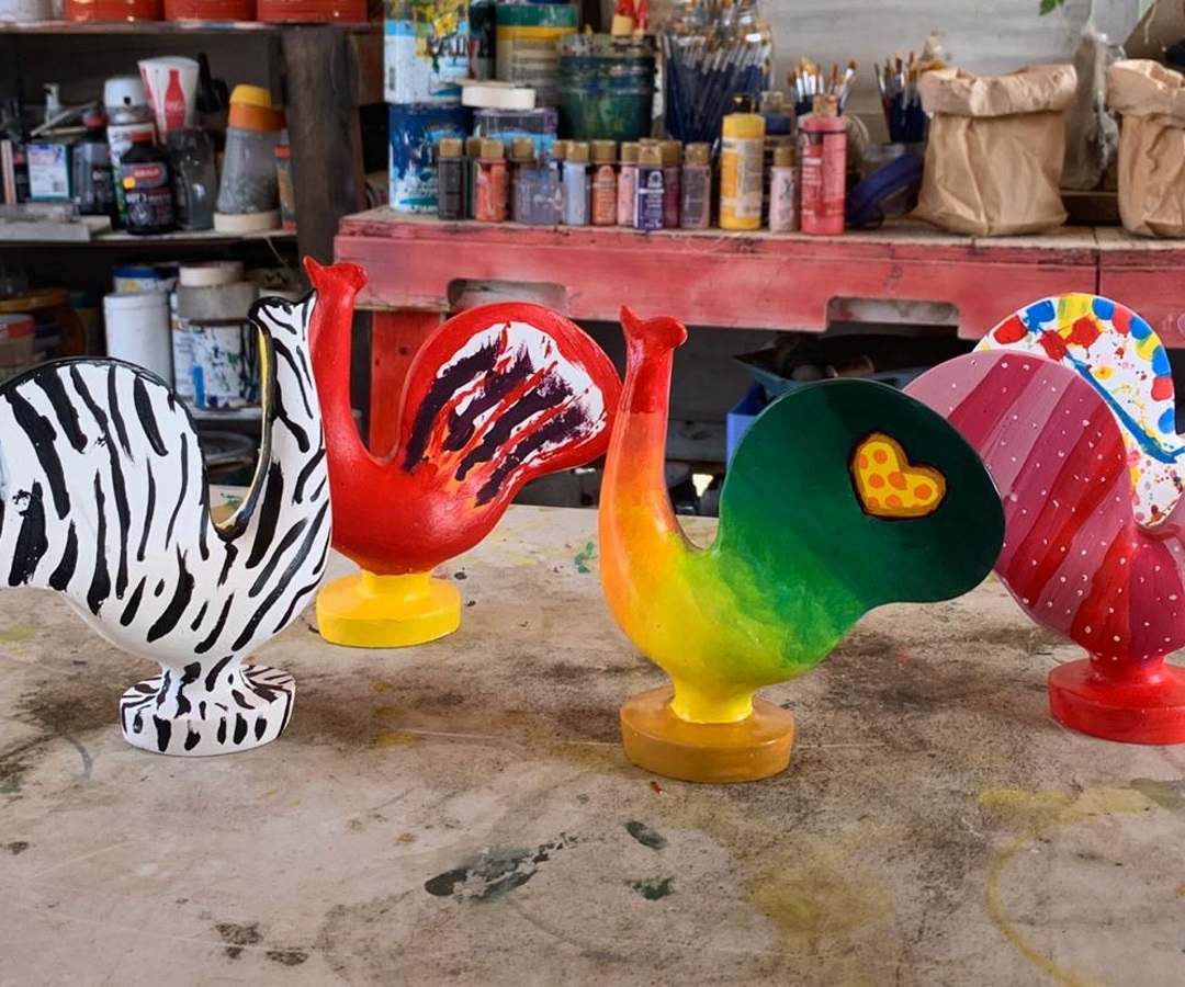 Uno de los principales atractivos al visitar el taller está en la posibilidad de pintar las aves de KokoYoko a partir de acuarela. Estas figuras fueron creadas por Sling y la idea es pintarlas con creatividad. “Los pájaros y los animales son libres, ellos saben más de nuestro mundo”, dice.