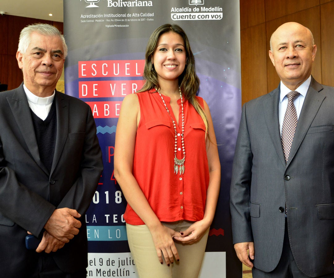 El presbítero Julio Jairo Ceballos, rector de la UPB; Ana María Bustamante, líder de la escuela de verano del claustro académico y Luis Gómez, vicerrector de la misma institución.