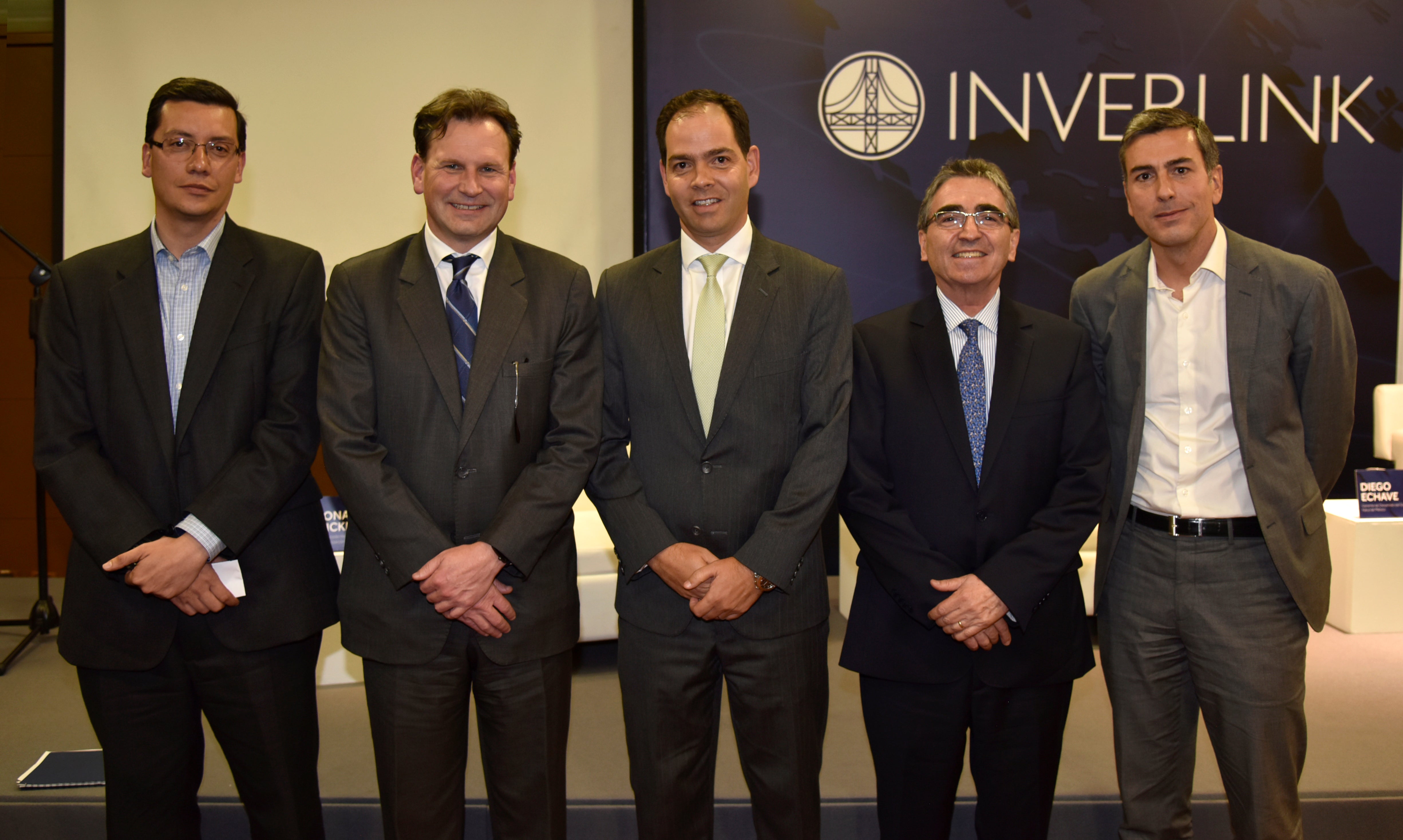 Andrés Baracaldo, vpte. de Desarrollo de Negocios de Interconexión Eléctrica; Jonathan Nickell, vpte. de Desarrollo de Negocios Organización Corona; Mauricio Saldarriaga, socio-director de Inverlink; Esteban Giraldo, pte. de Bimbo para Latinoamerica Centro; y Diego Echave, gte. de Desarrollo del Grupo Kaluz de México.