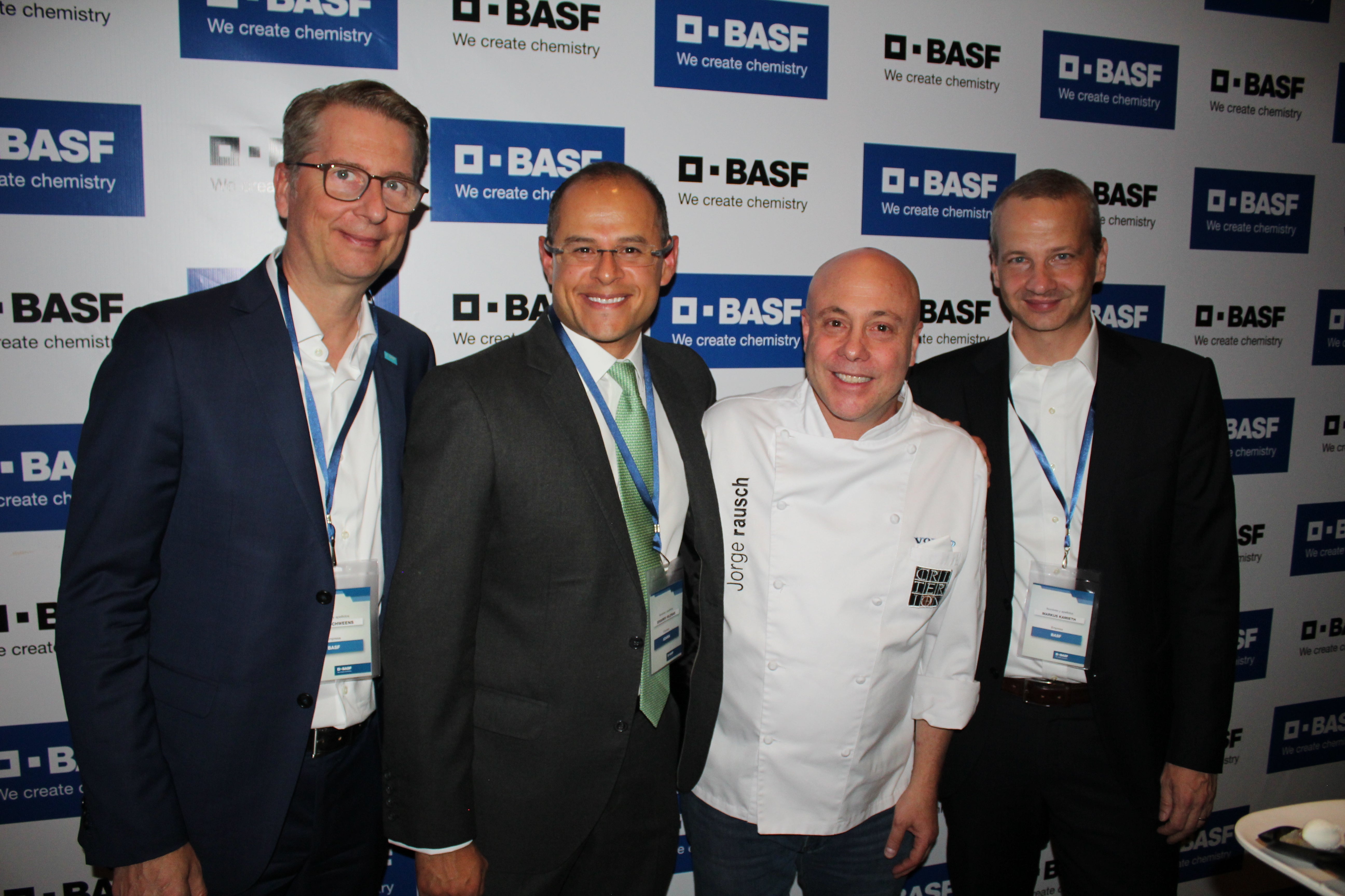 Ralph Schweens, presidente de Basf para Suramérica; Edgardo Iglesias, presidente de Adema; el chef Jorge Rausch; y el directivo homenajeado.