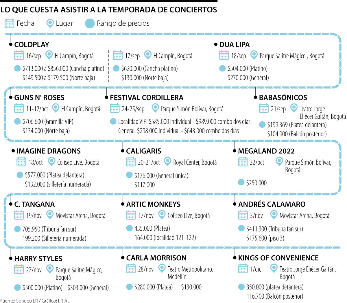 De hecho, tal es la abundancia de conciertos y opciones que se avecinan que LR hizo el ejercicio de estimar el presupuesto que se necesita para asistir a los mejores conciertos programados para los últimos meses del año.