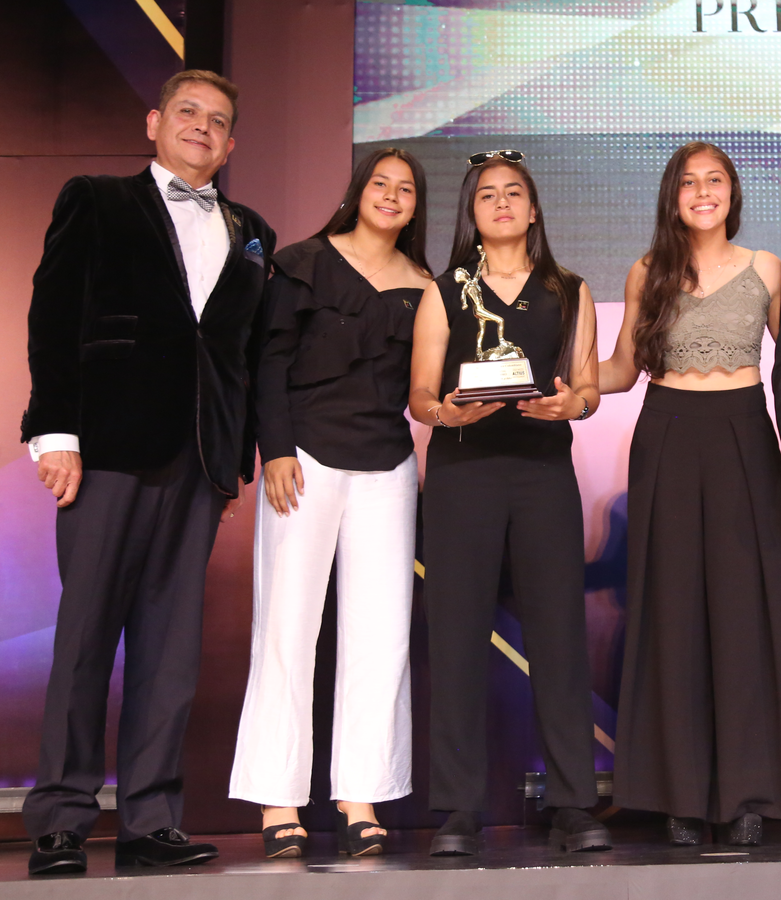 La boxeadora Ingrit Valencia, ganadora del Altius Plata; la levantadora de pesas Yenny Alvarez, Altius Oro; y el boxeador Kevin Quintero, Altius Bronce.