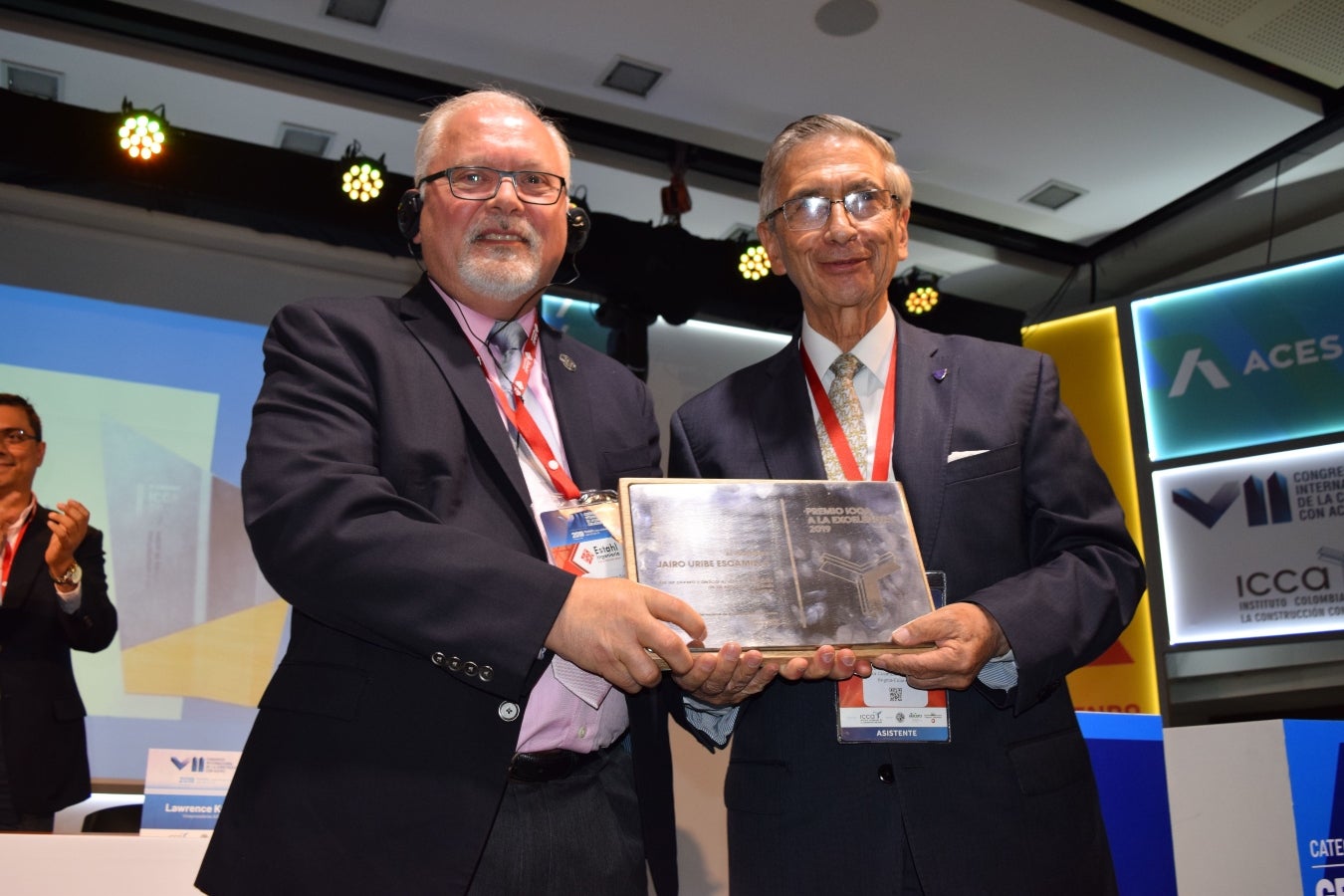 Lawrence Kruth, vicepresidente de Aisc, y Jairo Uribe, profesor de la Escuela Colombiana de Ingeniería.