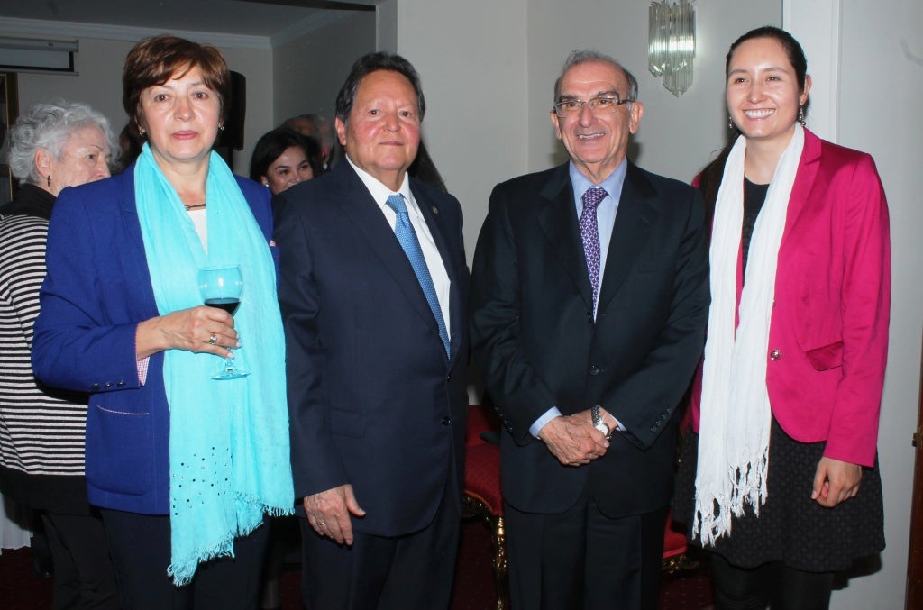 Cecilia Riveros; Alfonso Cuevas Zambrano, presidente del Colegio de Abogados de Bogotá; Humberto De La Calle Lombana; y Virginia Cuevas, durante la entrega del Galardón Jurista Emérito y Proposición de Aplauso del Colegio de Abogados de Bogotá.