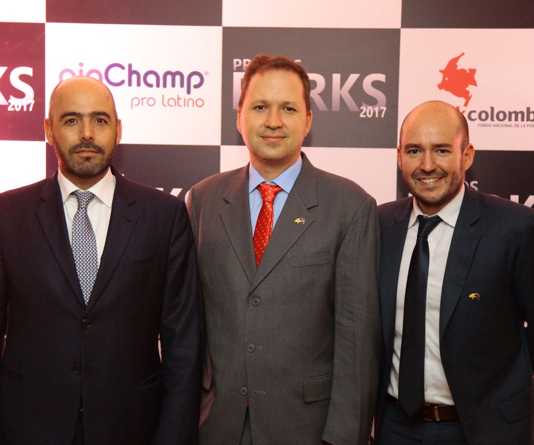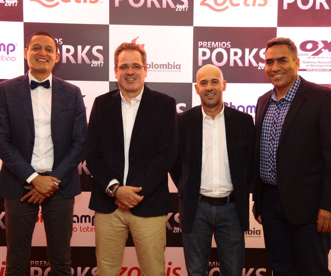 Foto: El Centro de Convenciones Gonzalo Jiménez de Quesada se vistió de gala para reconocer la labor de las granjas porcícolas del territorio nacional. Más de 200 personas asistieron al evento donde se reconoció la labor de La Granja Los Cerezales (Antioquia). En la foto: Jorge Enrique Bedoya, presidente de la Sociedad de Agricultores de Colombia (SAC); Juan David Roldán, gerente de la Granja Los Cerezales y ganador del premio Porks; y Carlos Maya Calle, presidente de PorkColombia.