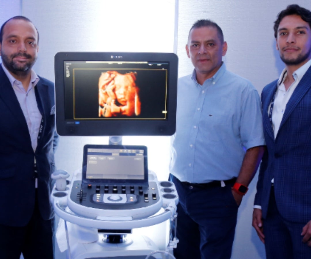 Denilson Kuratomi, director comercial de ultrasonido para América Latina; Elibeth Adisay Aguilar, líder del Departamento de Educación Latam de Ultrasonido de Philips; y Miguel Ángel García, cardiólogo.