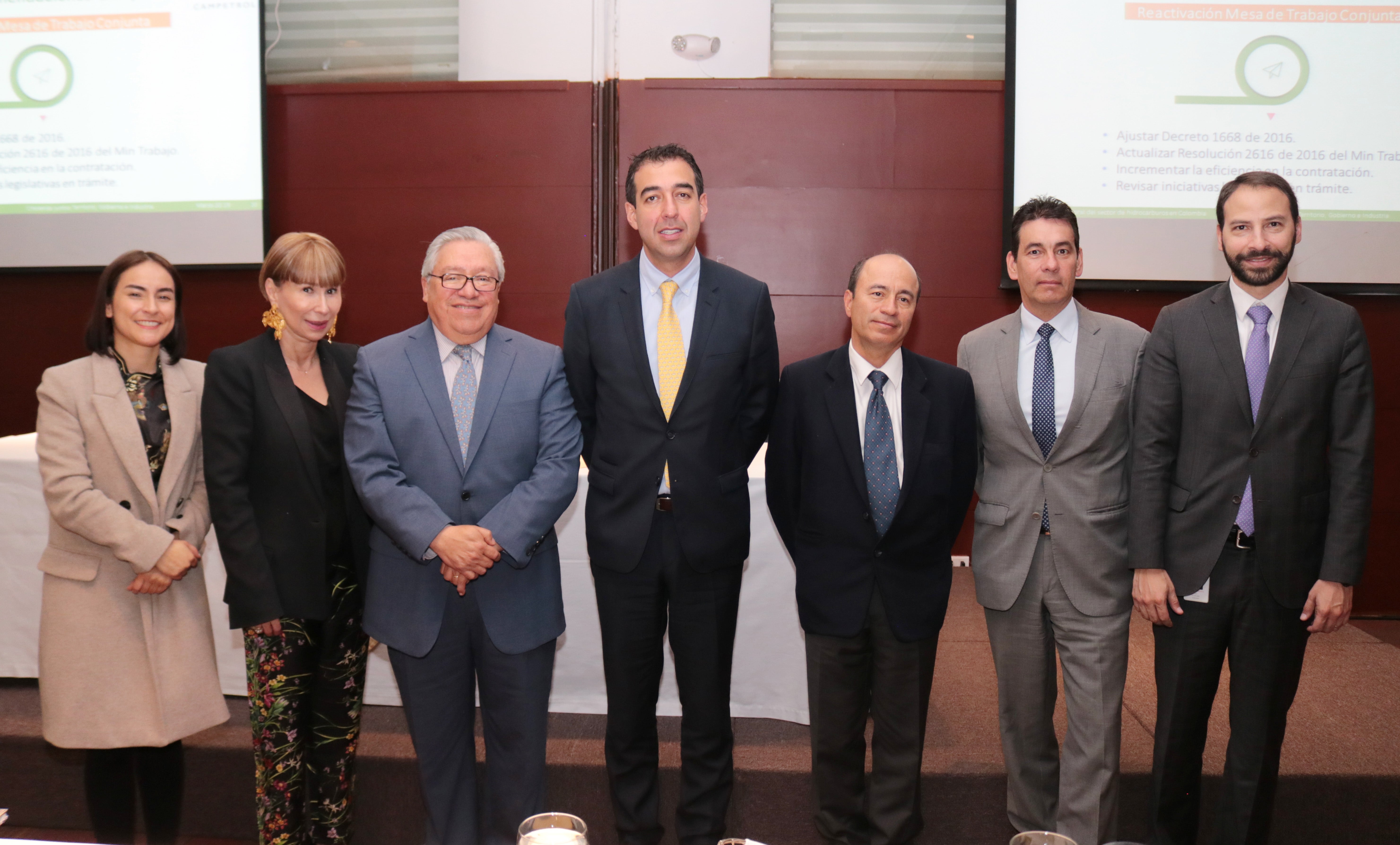 Angi Velásquez, directora del Servicio Público de Empleo (SPE); Alicia Arango, ministra del Trabajo; Germán Espinosa, presidente de Campetrol; Carlos Santos, vicepresidente de abastecimiento de Ecopetrol; Ricardo Ramírez, directivo de Schlumberger; César Aranda, Business Development Manager de Summun; y Juan David Orozco, Colombia Country Manager de Haliburton.
