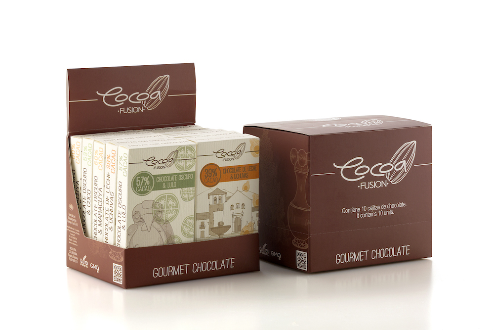 La marca de chocolate gourmet elabora barras de cacao a 72% con sabores típicos de frutas colombianas como la uchuva, el coco y la maracuyá. También tiene chocolates con grageas de café recubiertas con cacao a 70%.