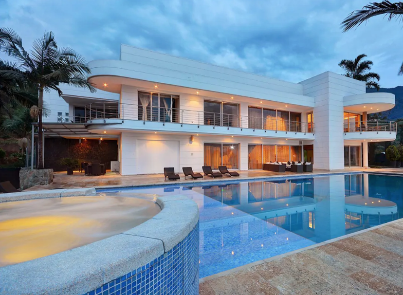 La mansión Marble, ubicada en Medellín muy cerca del famoso Parque Lleras, de 12 dormitorios, está construida al mejor estilo resort. Tiene piscina con calefacción, jacuzzi, BBQ y salón al aire libre. Desde el comedor tiene una vista increíble hacia la capital antioqueña.