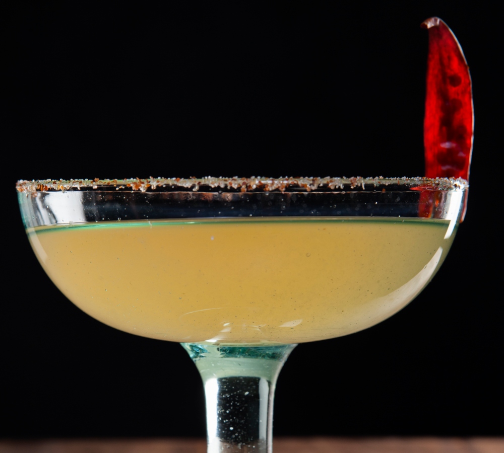 Tequila blanco, zumo de limón, triple sec, licor de chile ancho, sirope de habanero, chile piquín.