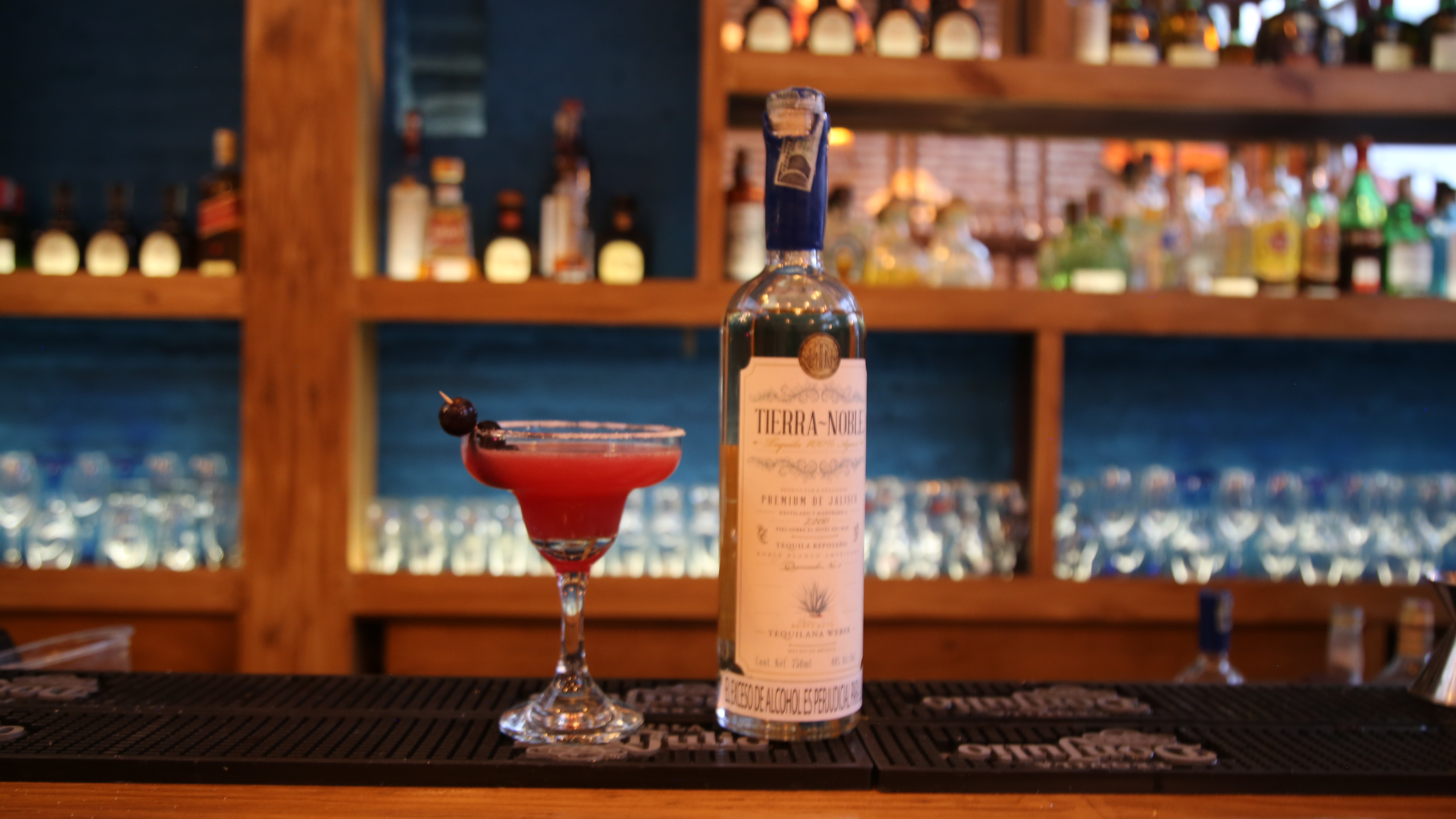 Tequila Tierra Noble reposado, con triple sec artesanal, zumo de limón y uvas.