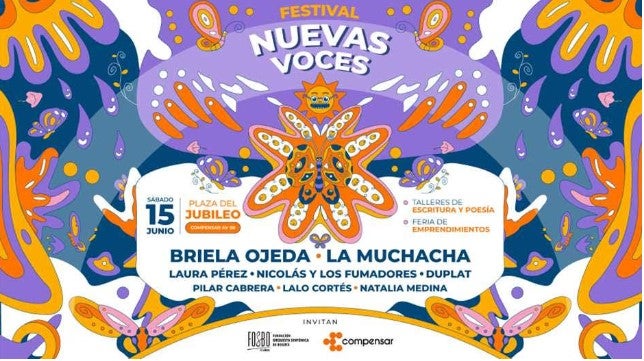 Este 15 de junio llega a la imponente Plaza del Jubileo de Compensar de la Av. 68 el Festival Nuevas Voces. Un Festival donde confluyen la música, el arte, el emprendimiento y la cultura, que trae en su primera edición algunos de los más relevantes cantautores de la escena independiente en Colombia, con un cartel conformado, principalmente, por mujeres.