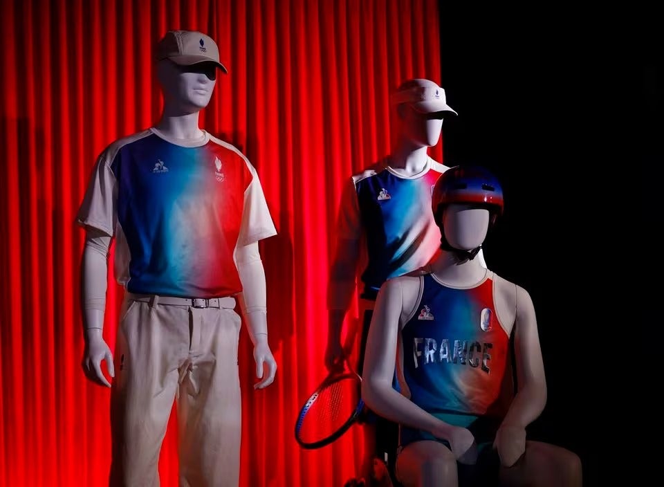La equipación, presentada en la sede del Comité Olímpico Francés, incluía el uniforme de la villa atlética, con un aire de los años 90, así como la indumentaria de entrenamiento y competición que será proporcionada por la marca francesa Le Coq Sportif.