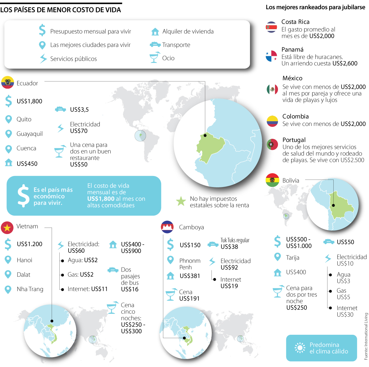 Un ranking de International Living, famosa por sacar boletines sobre destinos para vivir, sacó los mejores países para jubilarse en este año. Por lo que sí está considerando en jubilarse en el extranjero, aquí en LR le mostramos los cinco países mejor calificados que, por su costo y calidad de vida, ofrecen una buena opción para pensionarse.