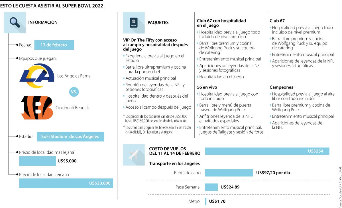 Si está pensando en el partido entre Los Angeles Rams VS Cincinnati Bengals, en California, el gasto promedio es de US$6.150