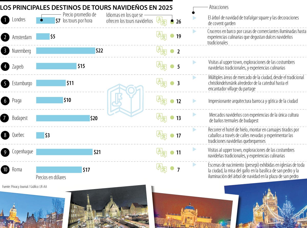 PrivacyJournal, la empresa especializada en análisis de datos, reveló los mejores destinos turísticos navideños del mundo para 2025 según datos de TripAdvisor y Kayak; y aquí le contamos cuáles fueron los destinos que sobresalieron en el listado.