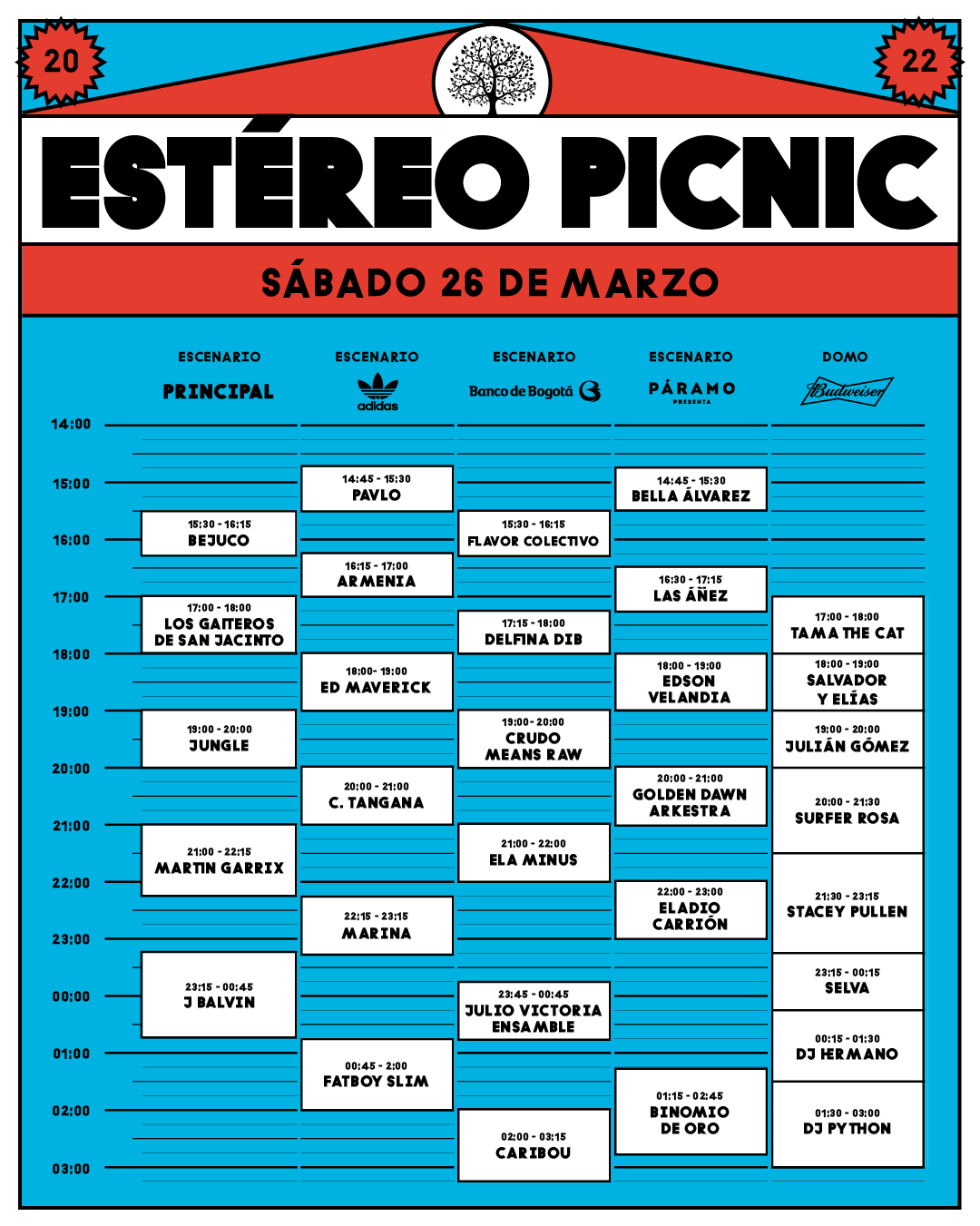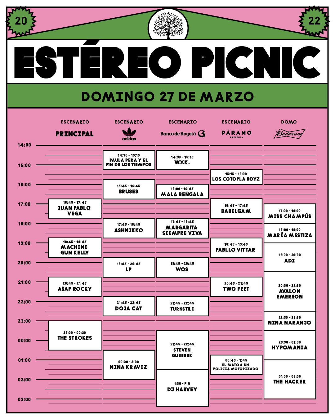 Hay que recordar que los artistas se distribuirán en cinco escenarios: Principal, Adidas, Banco de Bogotá, Páramo Presenta y Domo Budweiser.
