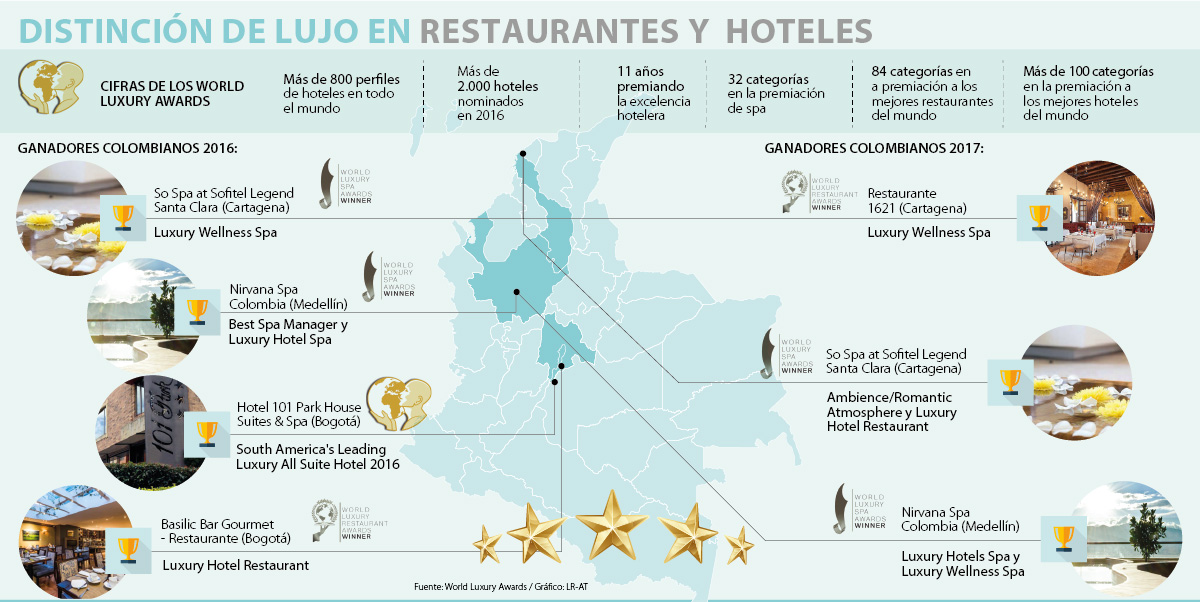 Los días en los que el verdadero lujo no hace parte del imaginario turístico en Colombia han llegado a su fin. En el país, hoteles como el Sofitel Santa Clara de Cartagena, que recibió cuatro reconocimientos de los World Luxury Awards (WLA) 2017, o el 101 Park House en Bogotá, también reconocido con este premio, han demostrado que los estándares de hotelería en habitaciones, servicio, spa y restaurantes en Colombia son cada vez más altos.