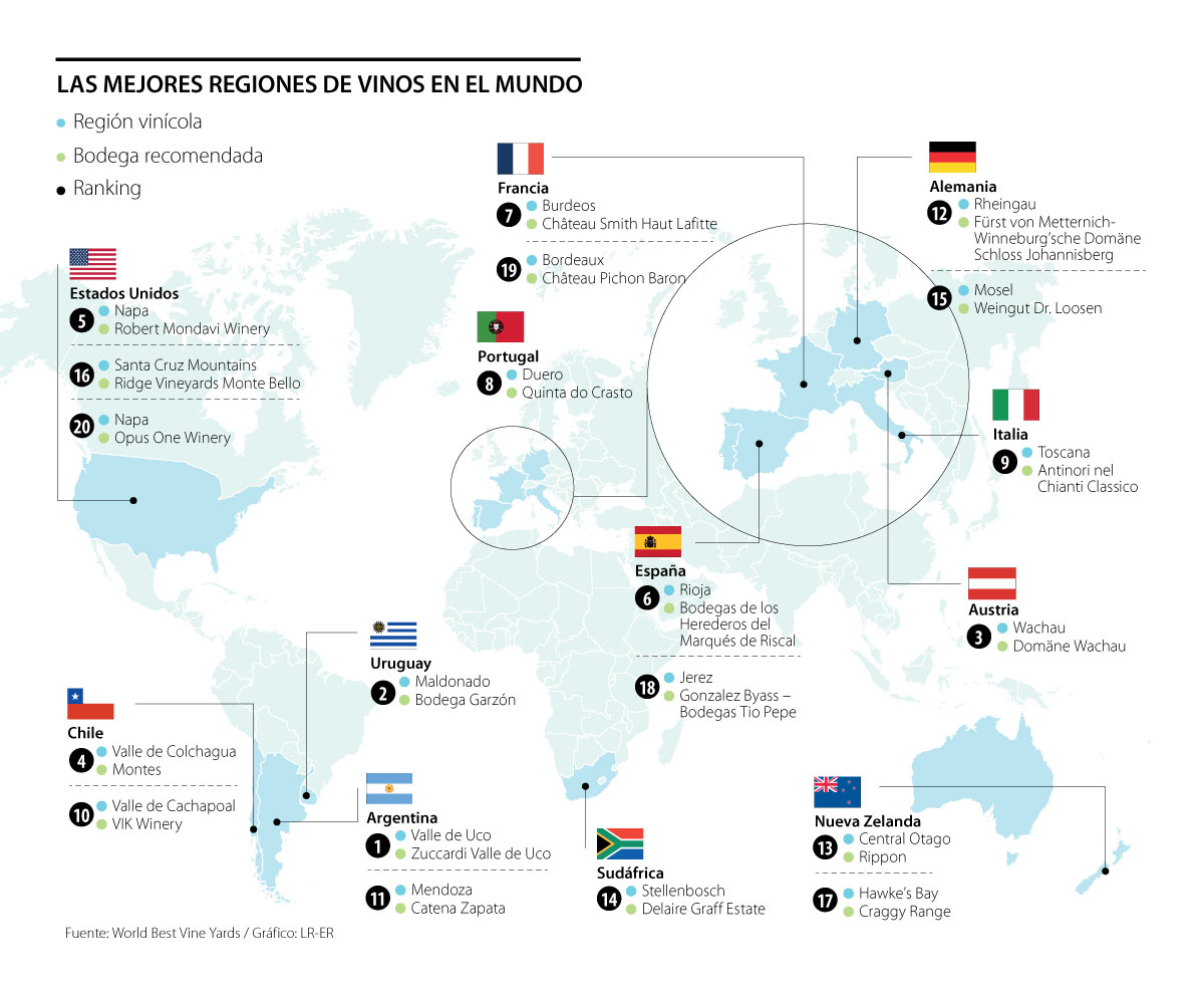 Los vinos son un universo completo que tiene amantes en todo el mundo y para ellos hay zonas a donde pueden viajar, una vez se pueda, que cuentan la historia de diferentes especialidades. Los World’s Best Vineyards son los premios especializados en calificar los mejores destinos internacionales y en el top 10 para el 2020 hay cuatro zonas latinoamericanas ubicadas en Argentina, Uruguay y Chile.