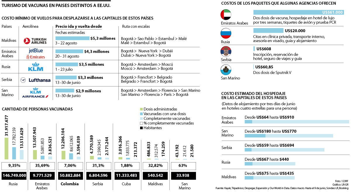 Estados Unidos sin duda es la principal opción para quienes quieren mezclar un viaje y lograr su vacuna. De hecho, desde Colombia, los últimos tres meses los vuelos a Florida han crecido 40% anual. Pero hay otras opciones para quienes buscan el mismo objetivo fuera de la Unión Americana.