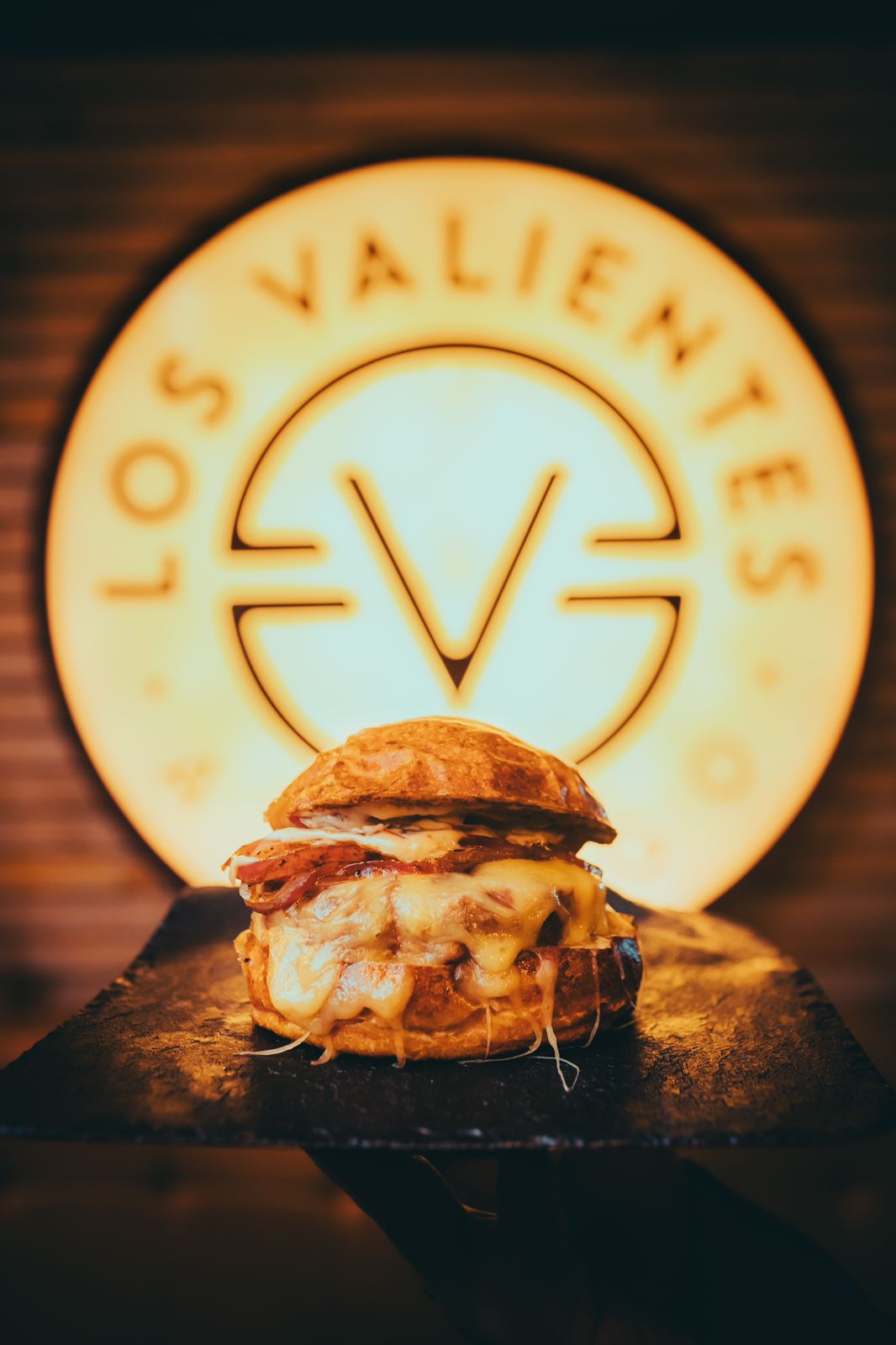 Recomendaciones en Bogotá. Santiago Arango, de Los Valientes a Fuego, quien viene de ser el cerebro de otras cocinas, para este año lanzó "El chorro de Quevedo", una hamburguesa que muestra a una persona que sí sabe hacer hamburguesas, se trata de una cuarto de libra de carne madurada en seco, cebolla asada al carbón, queso Monterey Jack, mayo de ajo negro Y toffee de tocino ahumado. El lugar está recibiendo a las personas en la Calle 85#18-90.