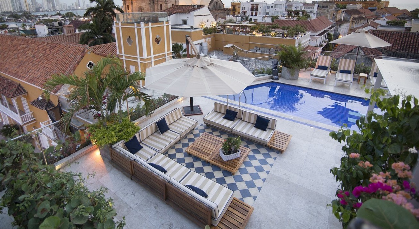 El lugar cuenta con una atractiva terraza con piscina, tumbonas, sillones y servicio de bar con vista panorámica de la ciudad de Cartagena. Esta sería una de las más exclusivas de la ciudad amurallada, tanto, que fue nominada por la publicación especializada Condé Nast Traveler como la azotea con la vista más privilegiada sobre Cartagena. Se encuentra ubicada en la Plaza de la Aduana en un edificio republicano.