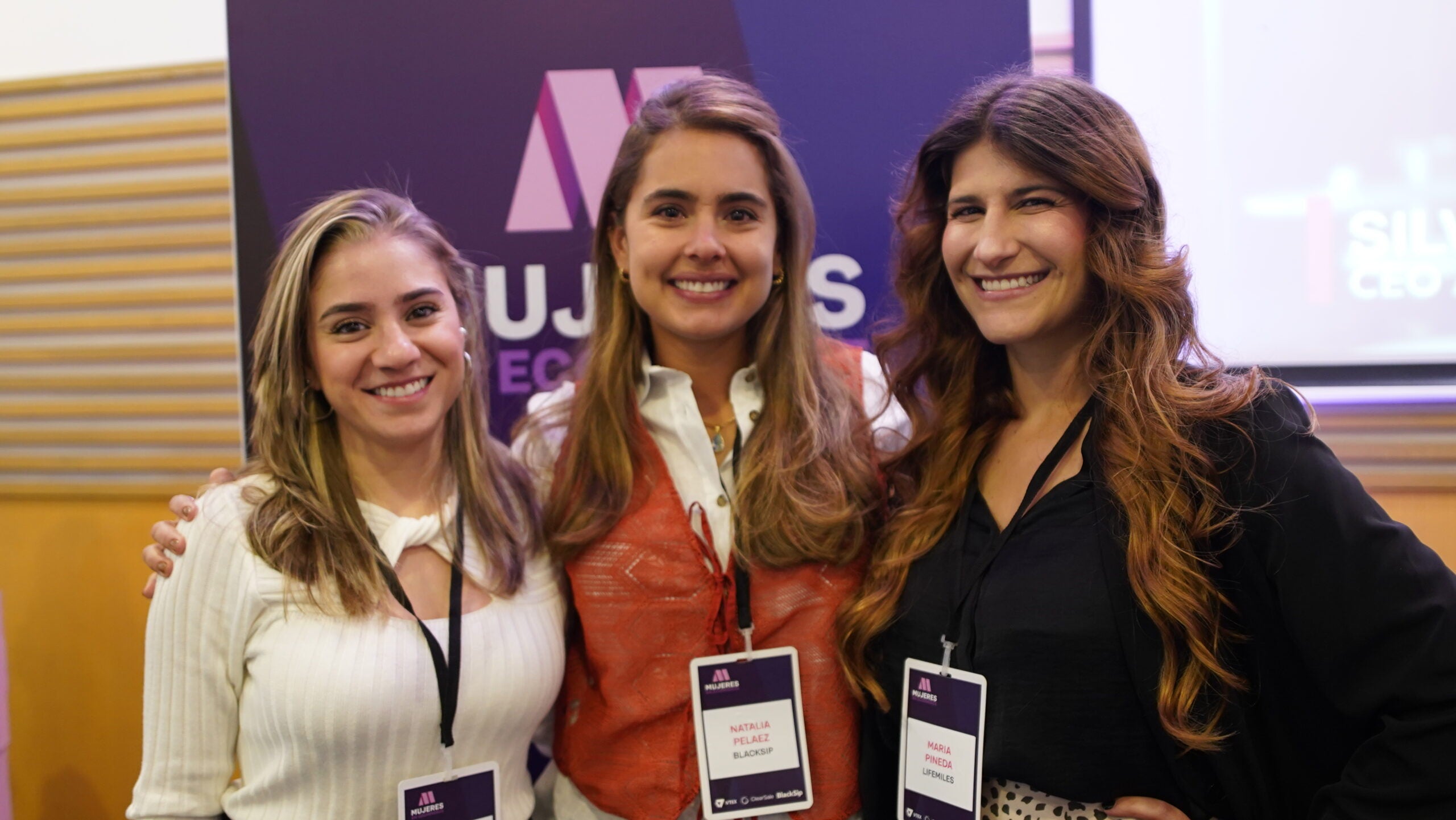 Ana María Restrepo, chief of Staff de Vtex; Natalia Peláez, CEO de BlackSip; y Maria Pineda, research & development de LifeMiles.