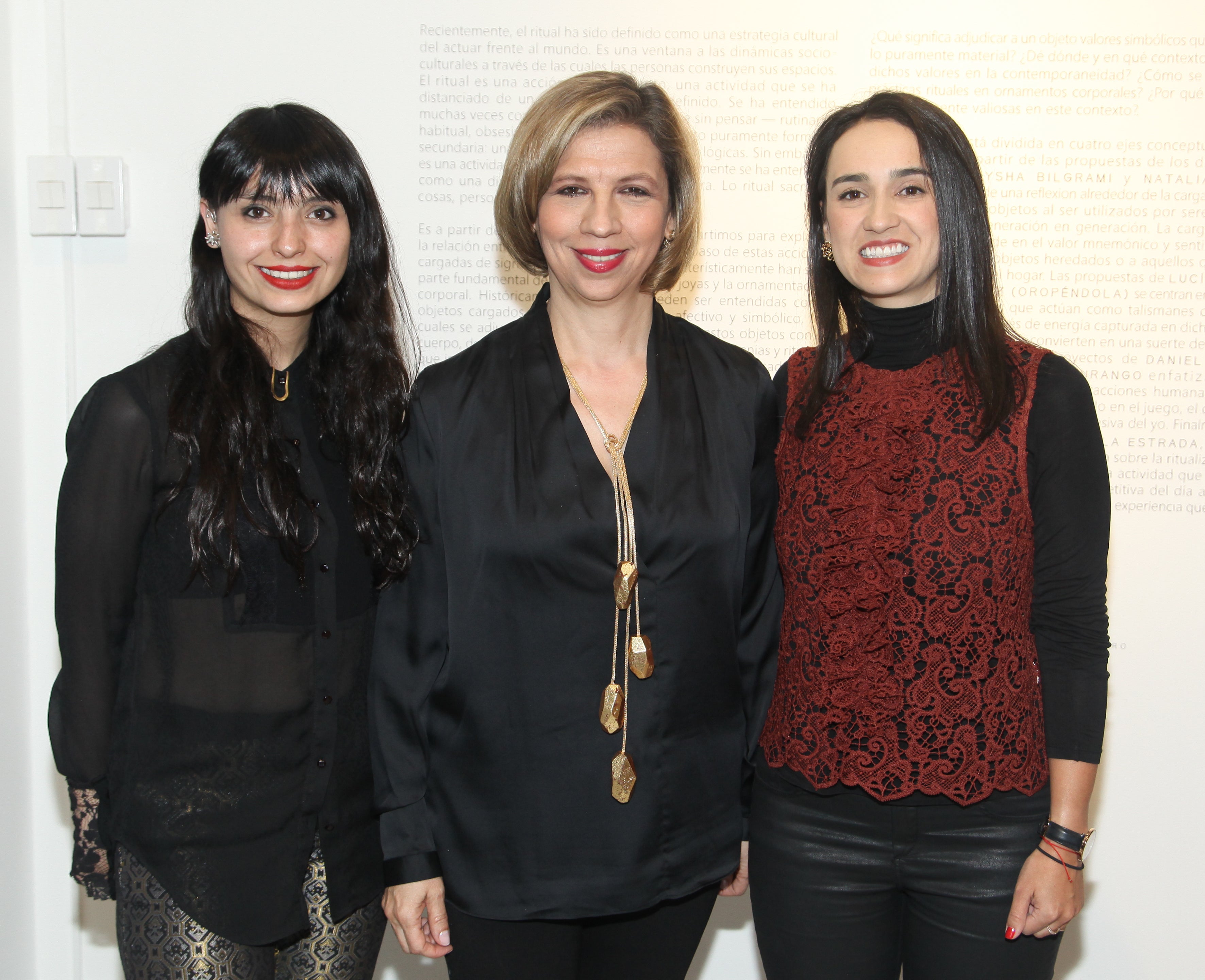 Foto: Natalia Solano, museógrafa; Andrea Walker, directora de la galería Aurora; y Juanita Solano, curadora de la exposición “Sémiophores: Objetos trascendentes” .
