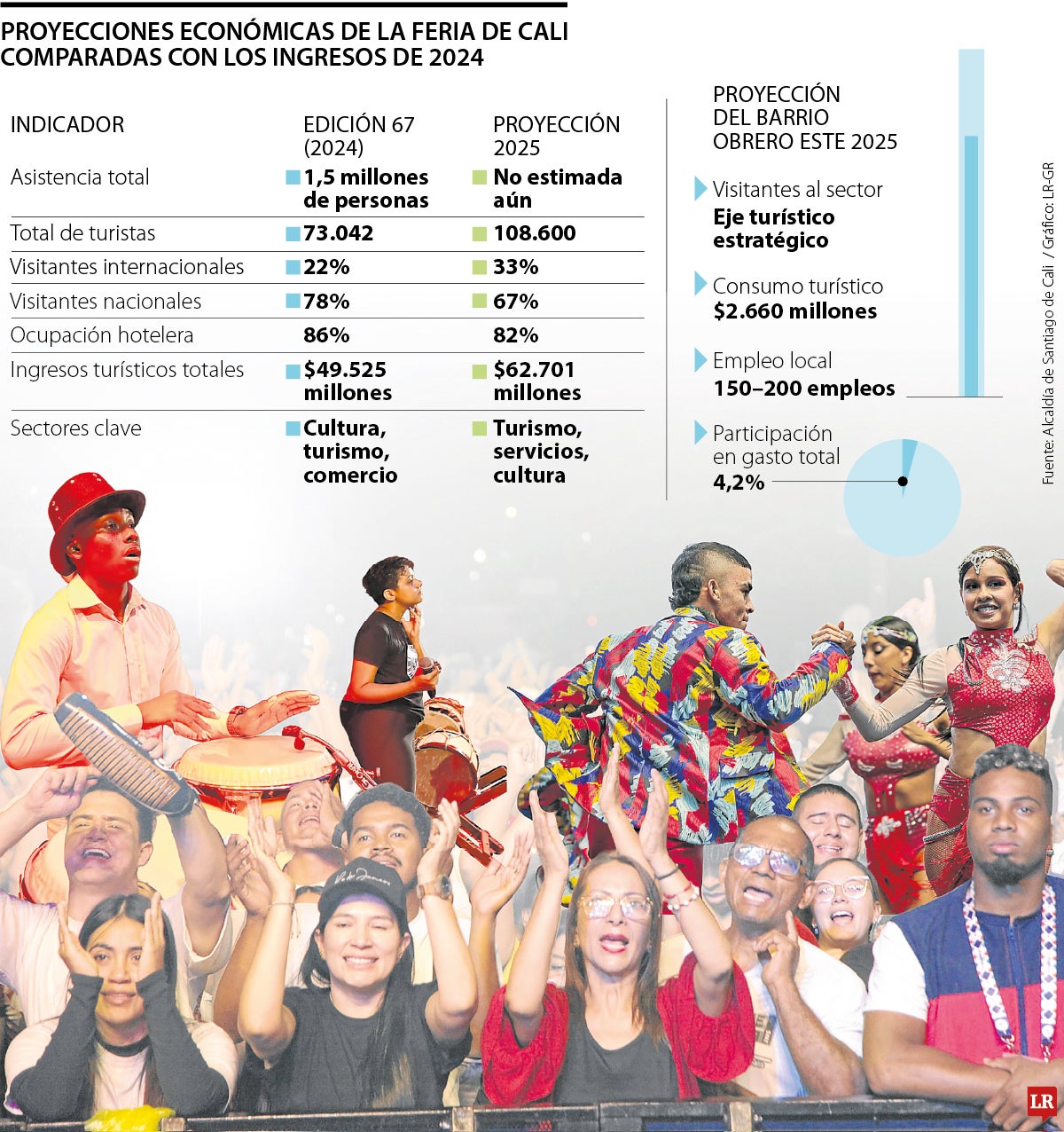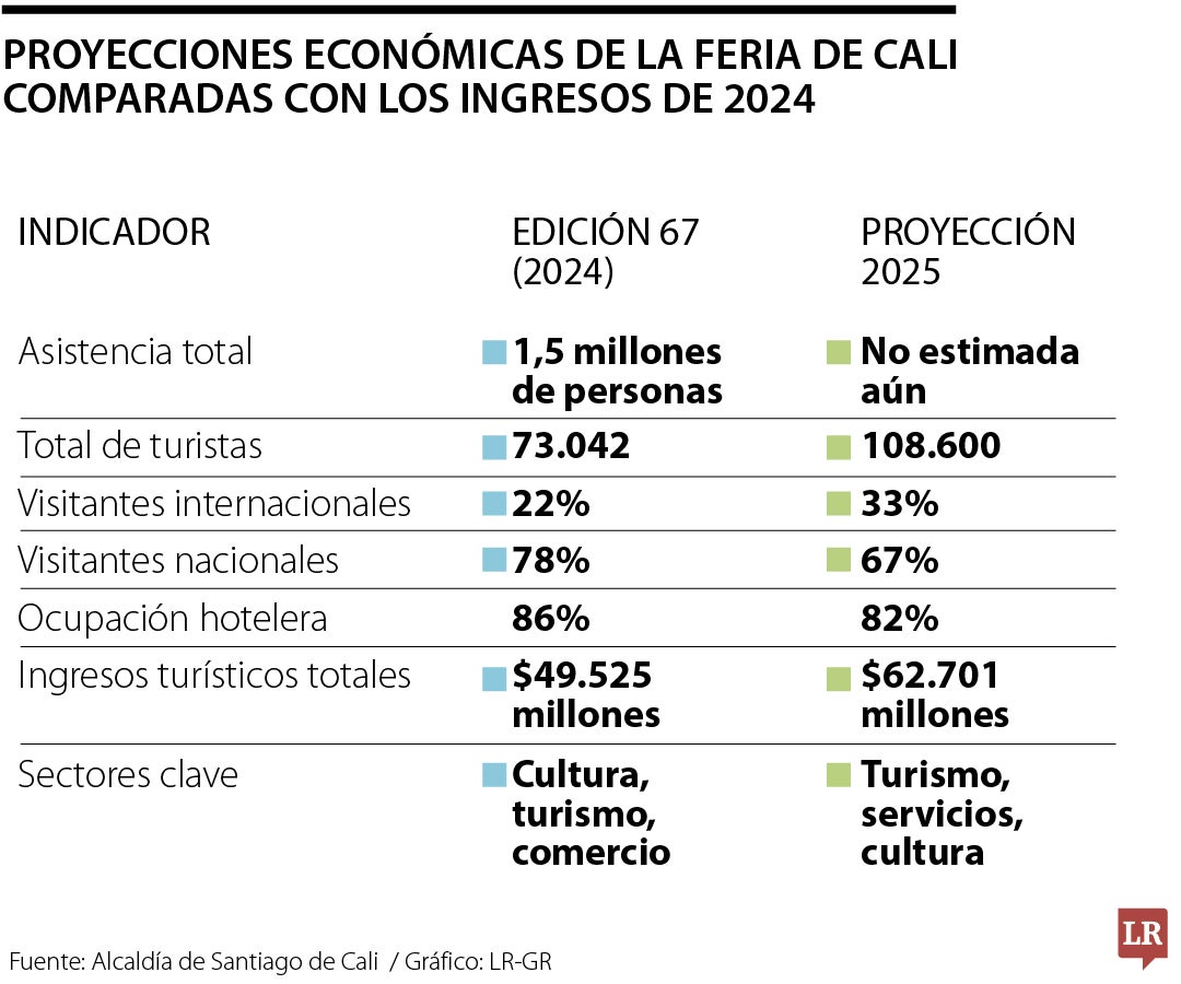 Se prevé además que 17 % serán provenientes del Valle del Cauca, 50 % de otras ciudades de Colombia y 33 % del exterior. En cuanto al crecimiento estimado frente a 2024, se planea que ronde 6 %.