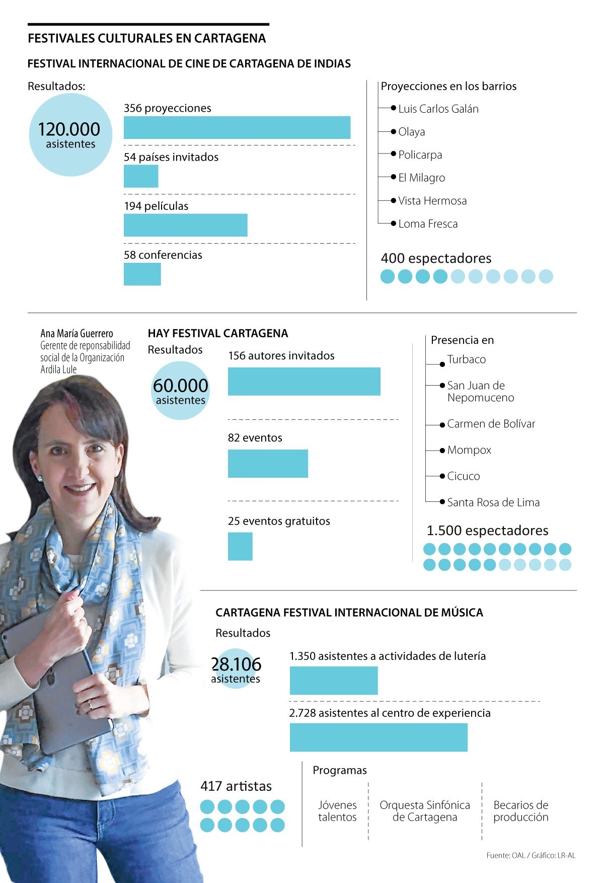 Hay Festival, Ficci y el Festival Internacional de Música reunieron en sus pasadas ediciones a más de 208.000 espectadores. Sin embargo, mantienen activos el resto del año